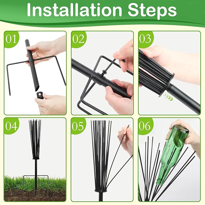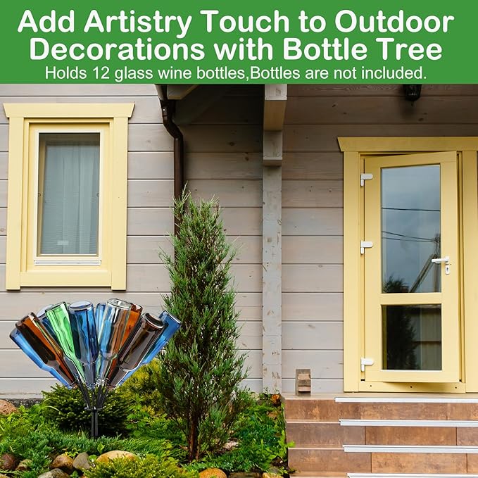 - Package Contents: Enhance the charm of your garden with this sophisticated outdoor metal wine bottle holder, perfectly crafted to accent any landscape. Each bottle holder features 24 elegantly designed branches to display your empty wine bottles (bottles not included), adding a touch of sophistication and vintage flair to your outdoor oasis