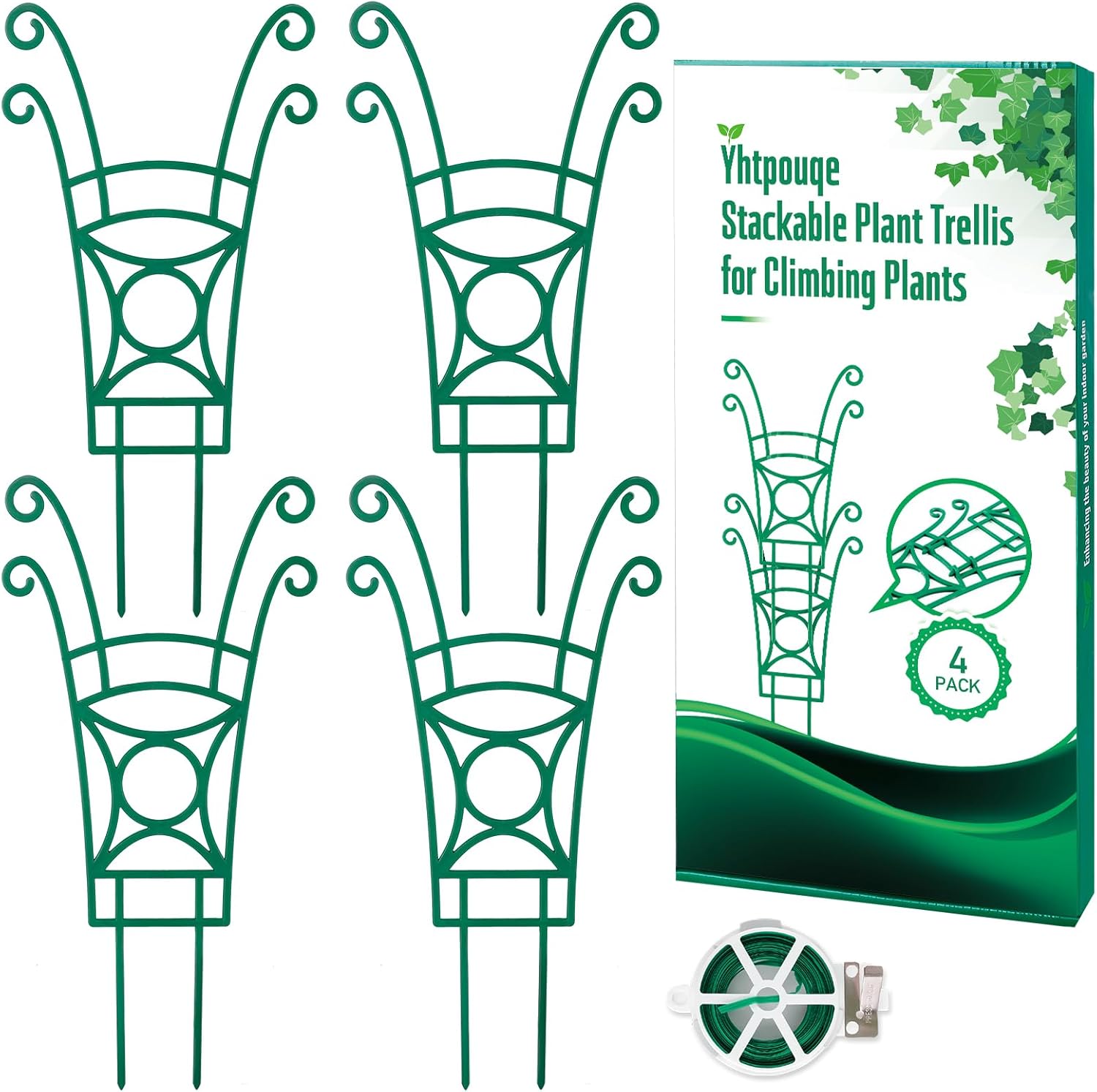 4 Pack Stackable Plant Trellis for Climbing Plants, Indoor/Outdoor Garden Trellis, Plant Support for Vine Ivy Hoya & Houseplants Flower