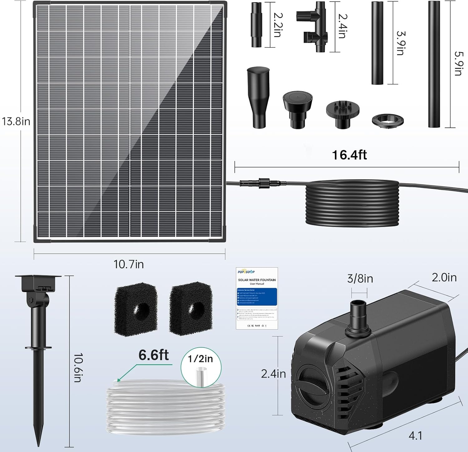 - ⛲【Profecsinnal Technical Support】 Poposoap solar fountain pump provide a 30-day money back and 1-year warranty, if have any problem with the item, we are available to help you within 24 hours.