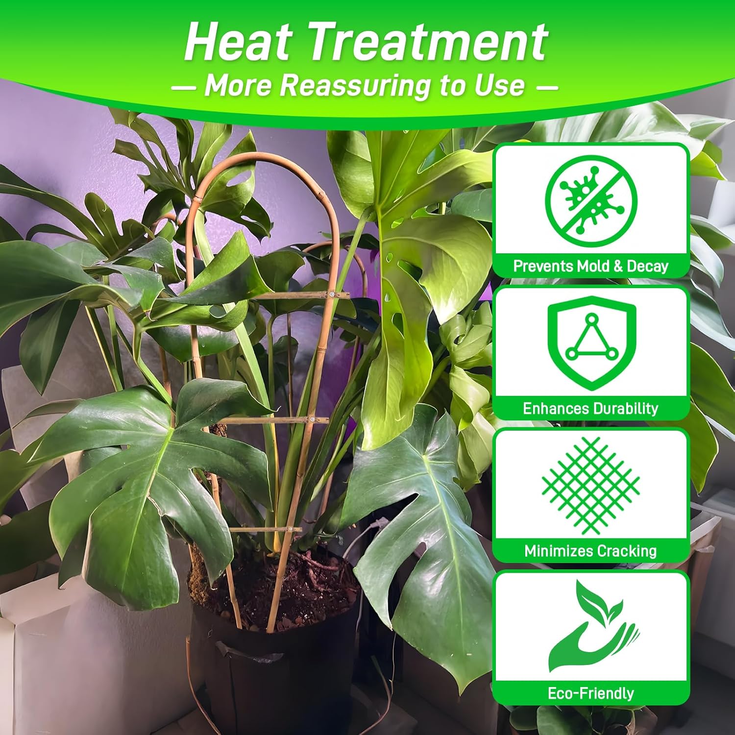 - 【Natural Bamboo】Each bamboo stalk is completely natural, carefully selected, and treated through smoking. Assembled manually, its U-shape design provides ample space for the growth of climbing plants.