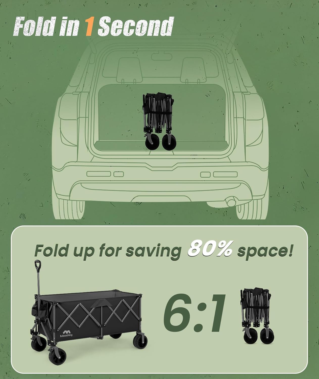 - ๐ฒ:๐ญ ๐๐๐ญ๐ซ๐๐๐ญ๐ข๐จ๐ง ๐๐๐ญ๐ข๐จ: We understand the importance of efficiency, which is why our wagon cart offers an excellent retraction ratio. This means that when folded, the lounge wagon takes up minimal space, yet expands to provide ample room for your belongings, making folding wagon carts the perfect balance between portability and functionality