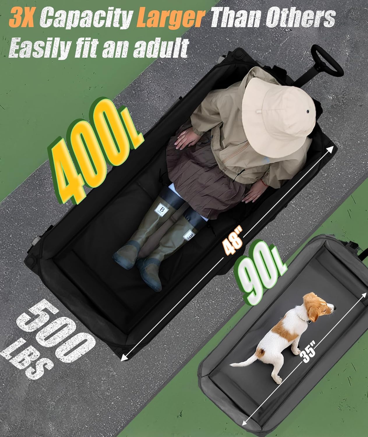 48โL Foldable Wagons Carts Extended, Collapsible Folding Wagon 500lbs Heavy Duty, 320L Large Beach Wagon, Utility Wagon with All Terrain Big Wheels for Sports, Camping, Grocery, Garden, Black