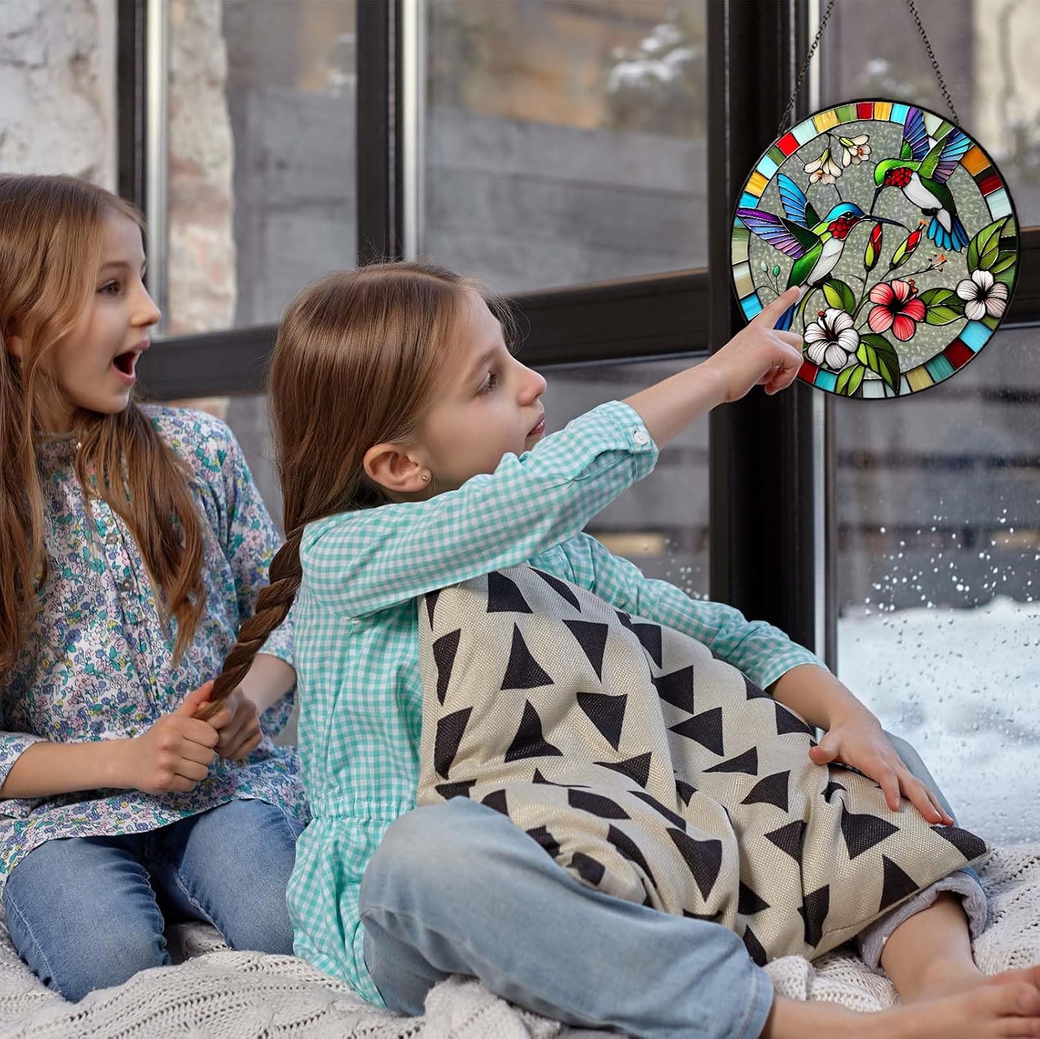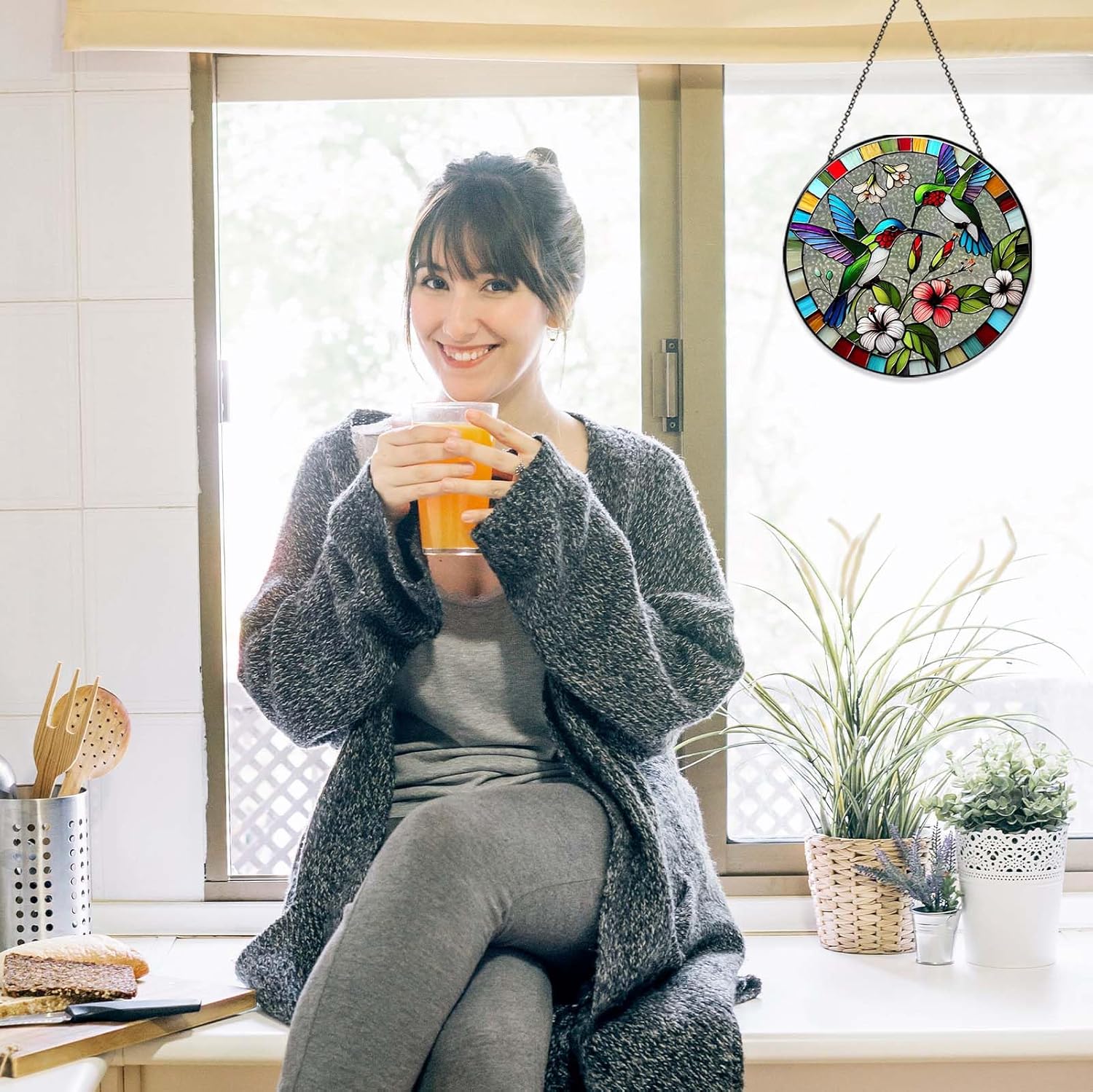 Hummingbird Sun Catcher Stained Glass Window Hanging Hummingbird Decor Gifts Bird Suncatcher for Window Decor Handmade Sun Catcher Decoration for Garden Home Housewarming Gifts