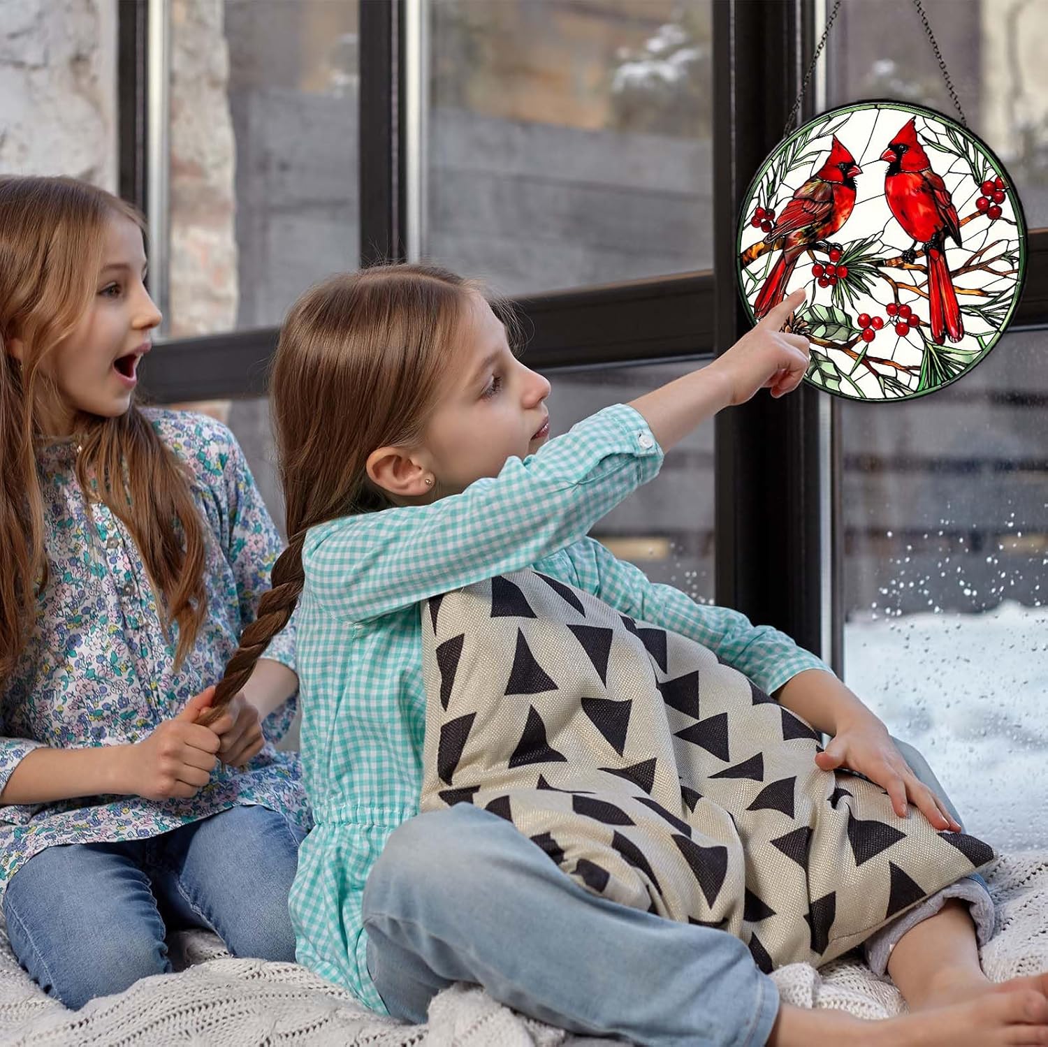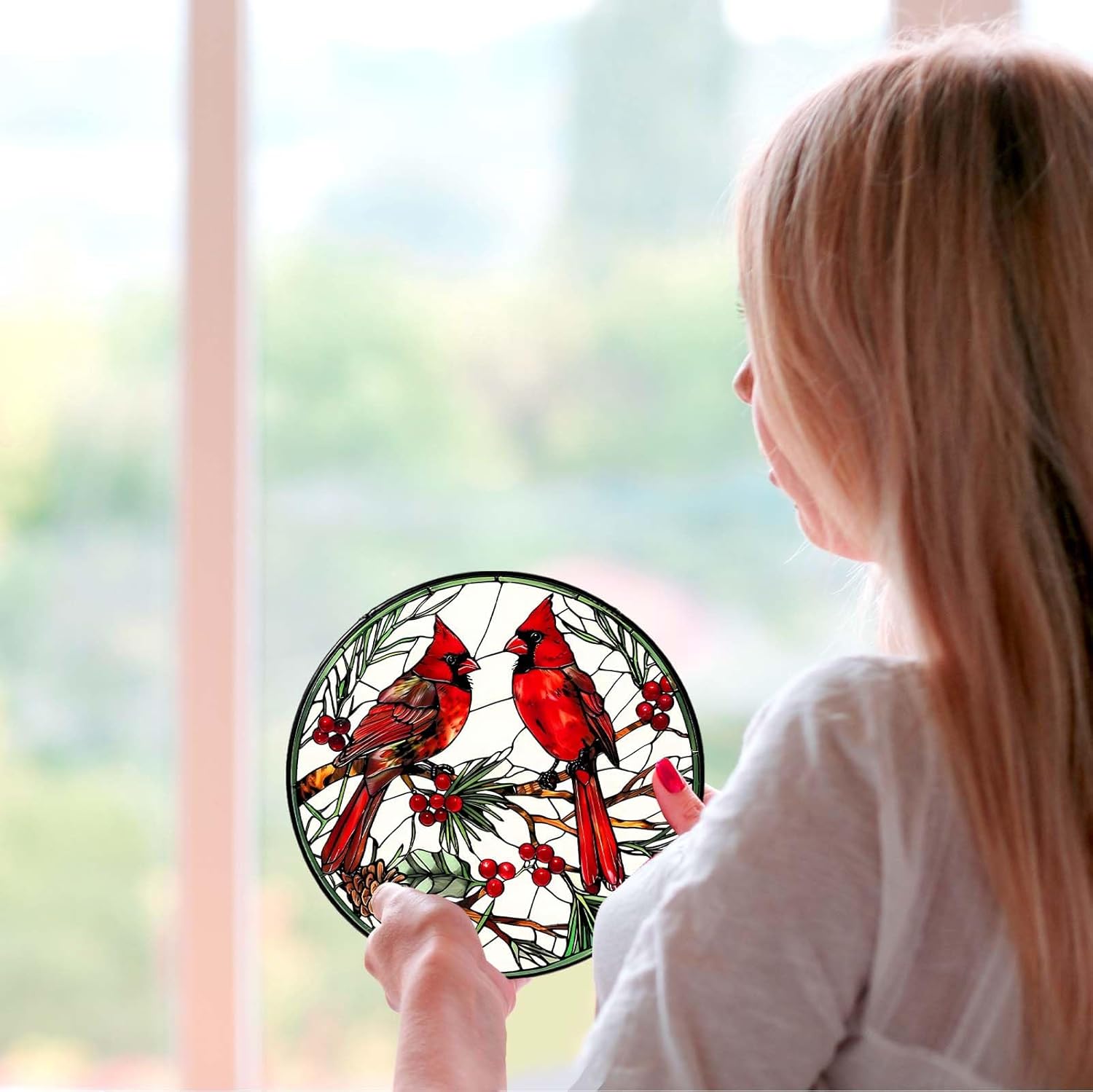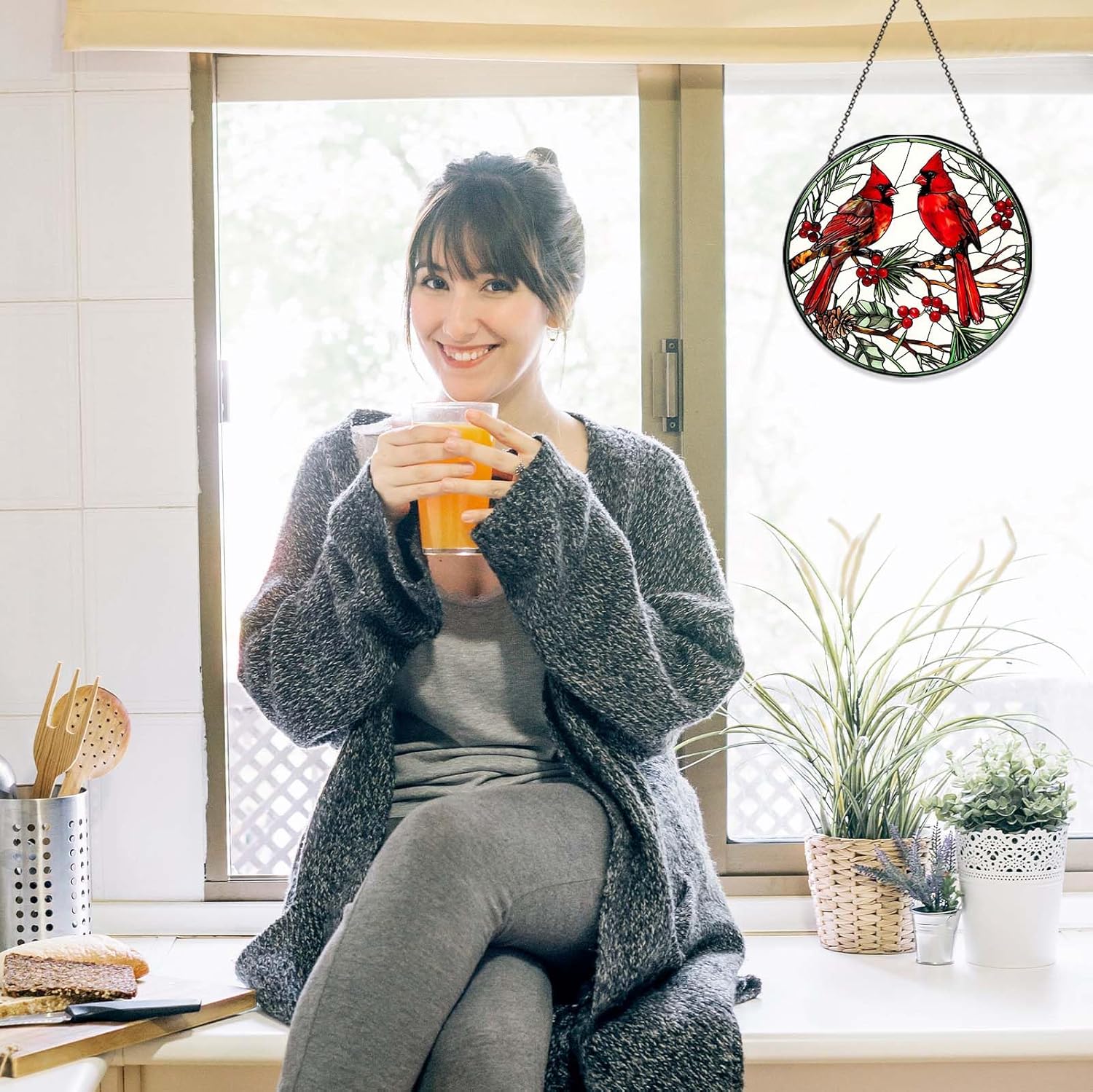 Cardinal Sun Catcher Stained Glass Window Hanging Cardinal Decor Lovers Gifts for Women Handmade Sun Catcher Decoration for Garden Home Housewarming Gifts