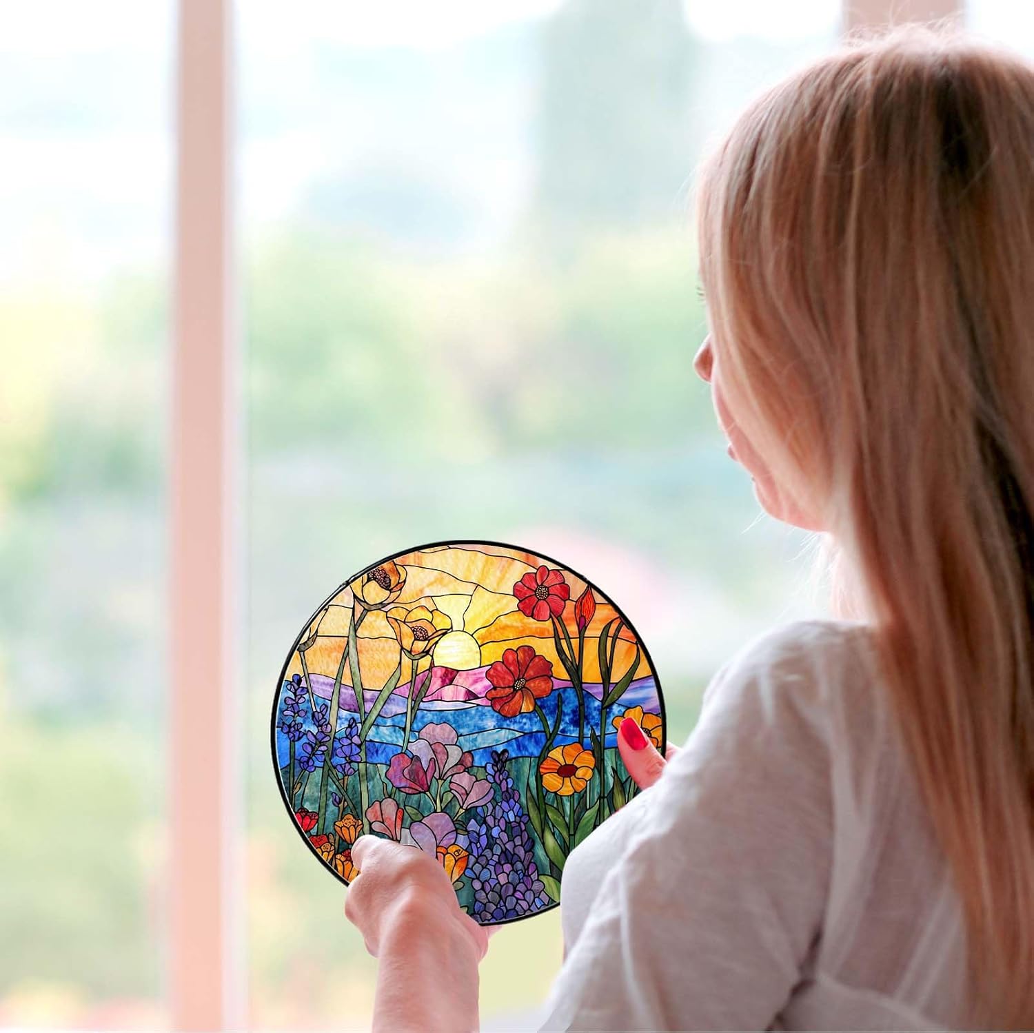 Wildflowers Sun Catcher Stained Glass Window Hanging Plant Lover Gifts for Women Wildflowers Wall Decor Handmade Sun Catcher Decoration for Window Garden Home Christmas & Birthday Gifts
