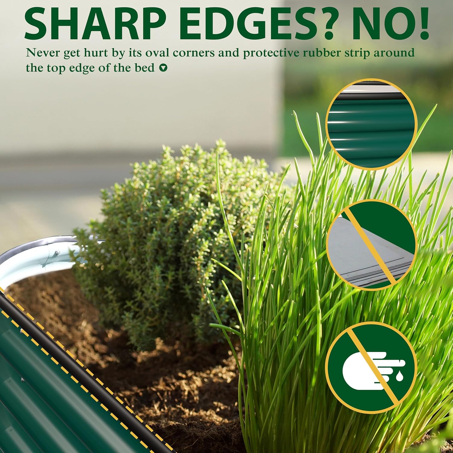- Open-Base Raised Garden Bed-The galvanized raised garden bed outdoor for vegetables with bottomless design for better performance in water drainage on the soil or grass, making the roots of plants grow healthier. The oval growing garden planter box can be used to grow any vegetables as lettuce, beans, tomatoes, potatoes or any flowers for indoor and outdoor growing. The 11.1" tall design of garden bed requires less bending down for gardening and protects your plants from your pets.