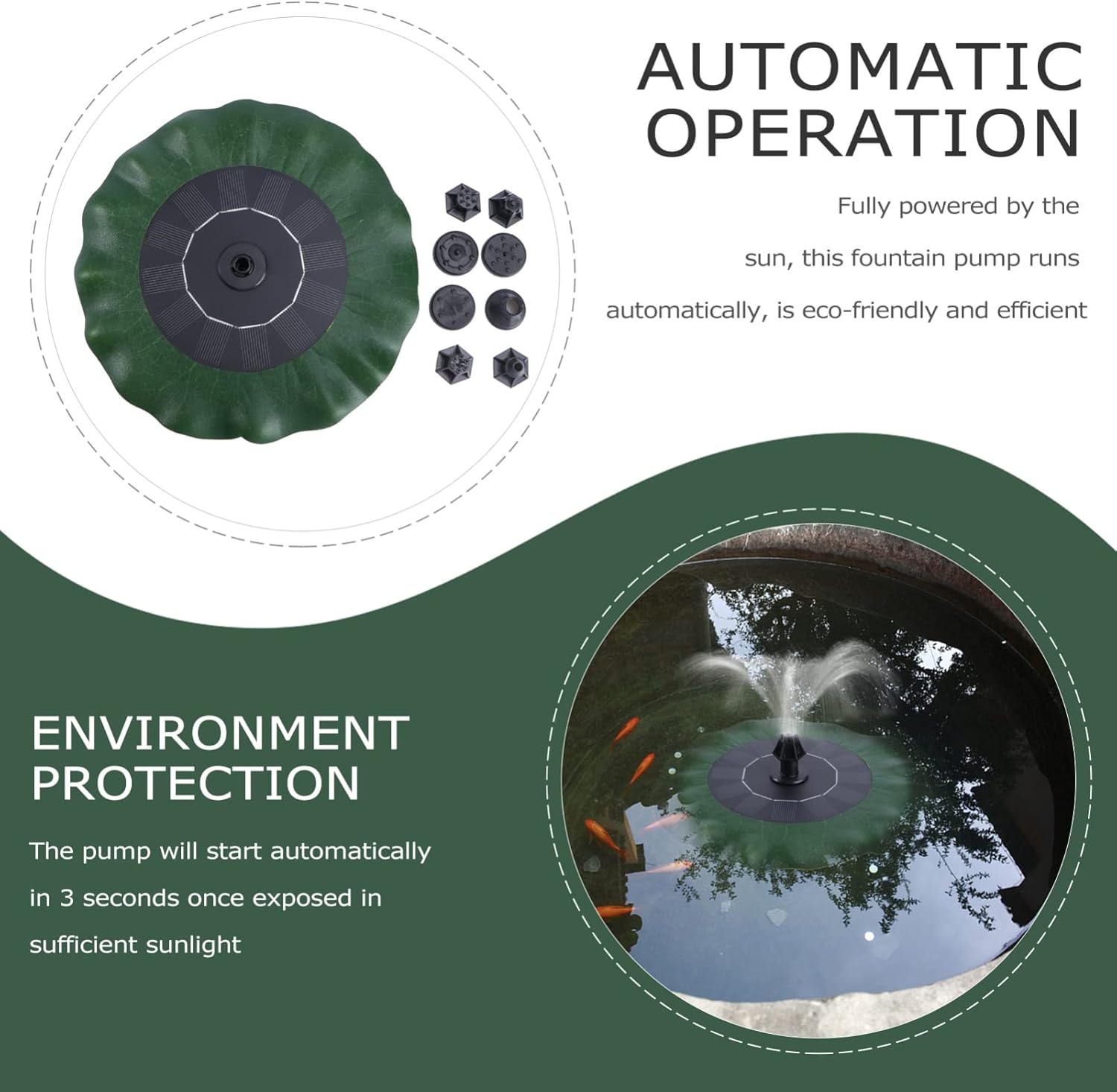 - Floating Fountain Outdoor --- Fully powered by the sun, this fountain pump runs automatically, not require batteries or electricity