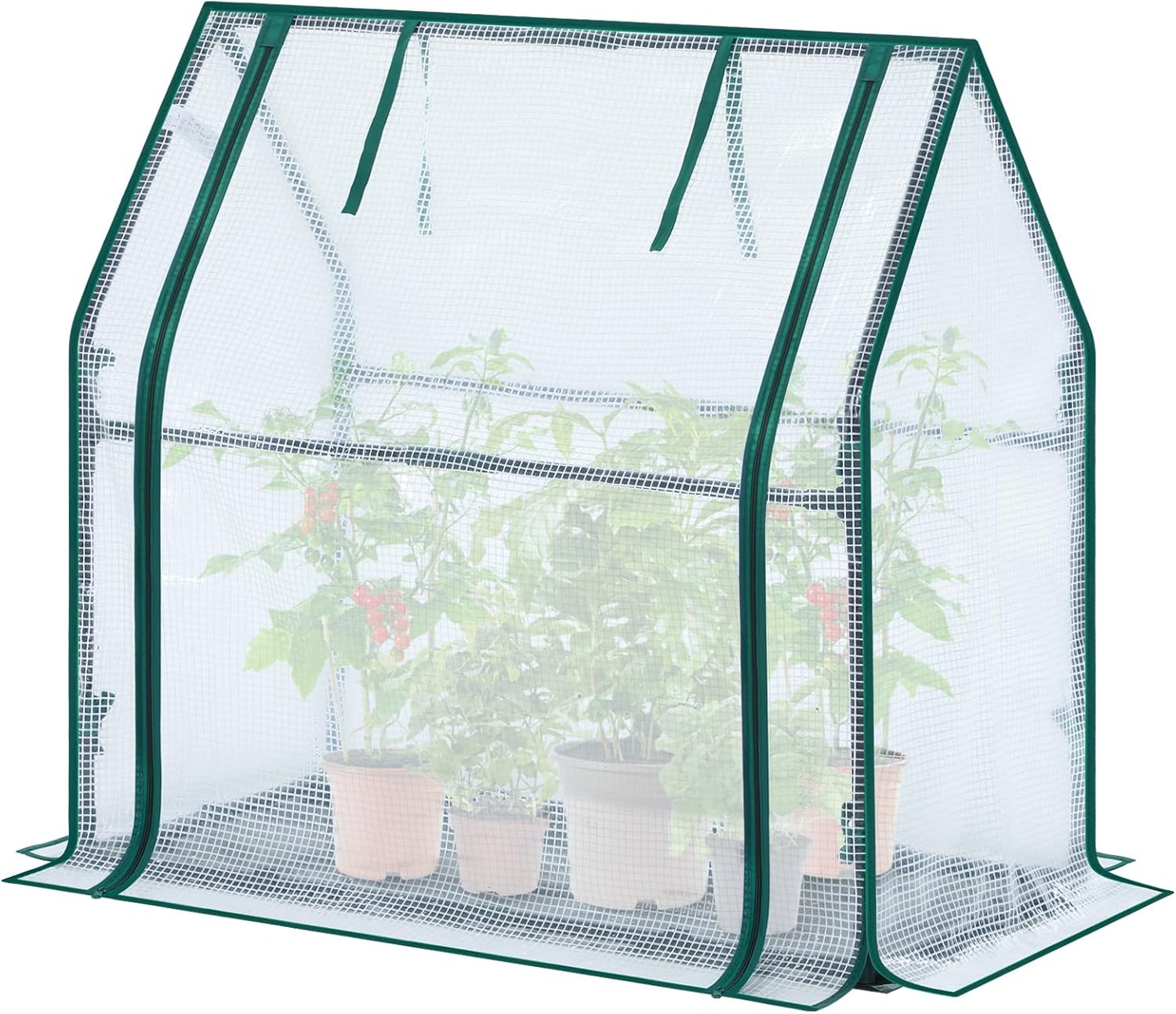 Mini Greenhouse for Indoor Outdoor: Ohuhu Tabletop Portable Green House with Waterproof Pad for Small Plants Nursery Germination, 36"x18"x33" Heavy-Duty PE Cover White