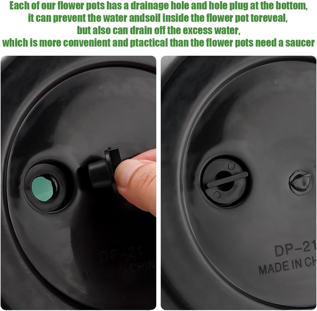 - Optimal Drainage System: Each pot features a drainage hole and a plug at the bottom to prevent overwatering and promote healthy root growth for your plants. Sleek, modern design complements any setting, from balconies and patios to living rooms and offices