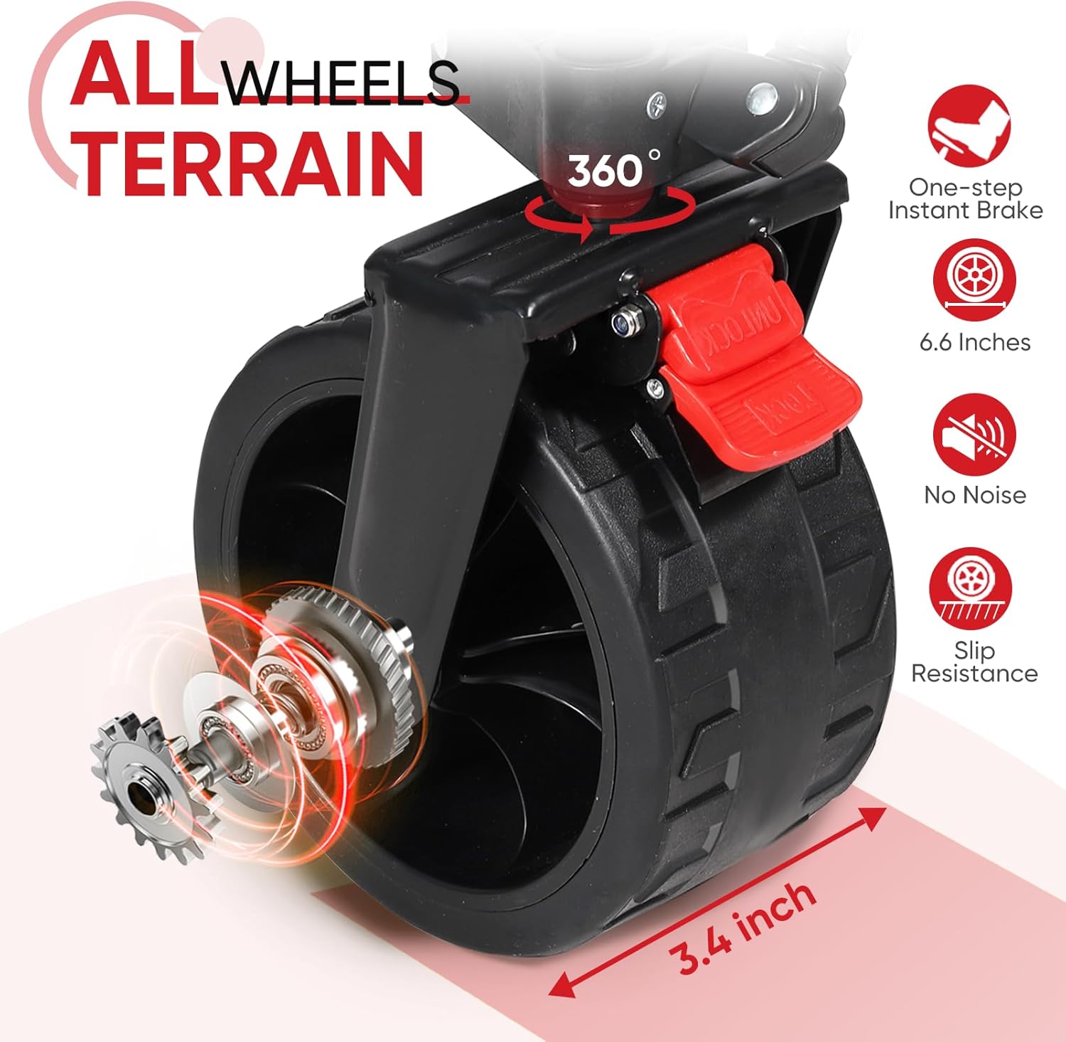 - ๐๐น๐น-๐ง๐ฒ๐ฟ๐ฟ๐ฎ๐ถ๐ป ๐๐ถ๐ด ๐ช๐ต๐ฒ๐ฒ๐น๐: ๐ฒ.๐ฒ" heavy-duty wheels tackle any terrainโideal for sand, rocks, grass, and mud! Built-in bearings ensure a ๐พ๐๐ถ๐ฒ๐ ๐ฟ๐ถ๐ฑ๐ฒ, and the ๐๐๐ฒ๐ฝ-๐ฏ๐ฟ๐ฎ๐ธ๐ฒ system gives you instant stopping power.