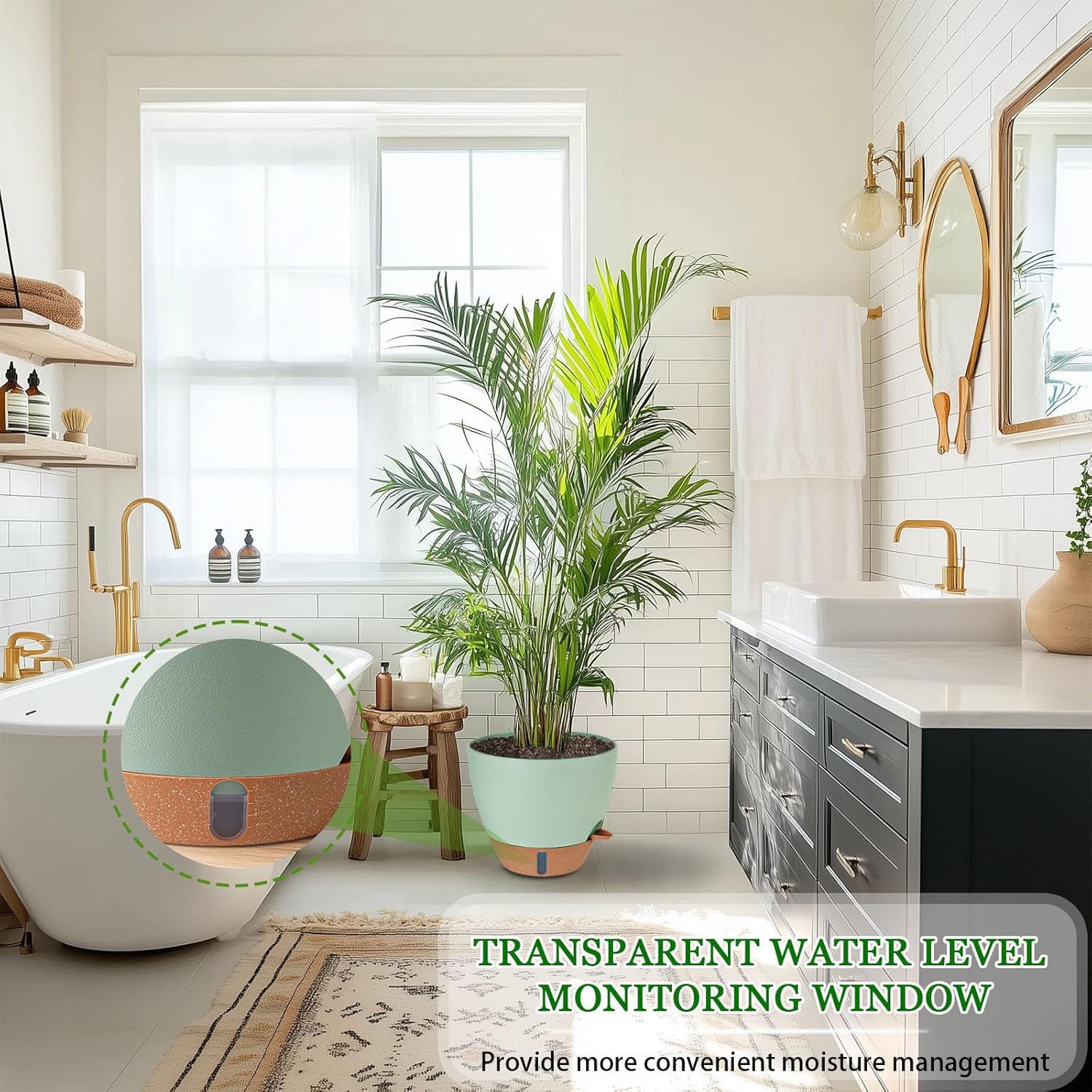 - 🌿 【Self-Watering Pots with Water Level Indicator】 Designed for busy plant lovers, our 8/10/12 self-watering pots feature a built-in ABSORBENT COTTON WICK SYSTEM that automatically draws water from the detachable bottom tray. The TRANSPARENT WATER LEVEL WINDOW WITH MEASUREMENT MARKINGS lets you monitor hydration at a glance, ensuring no overwatering or underwatering. Perfect for indoor/outdoor plants, this system keeps soil evenly moist for up to 7-10 days—ideal for vacations or hectic schedules.