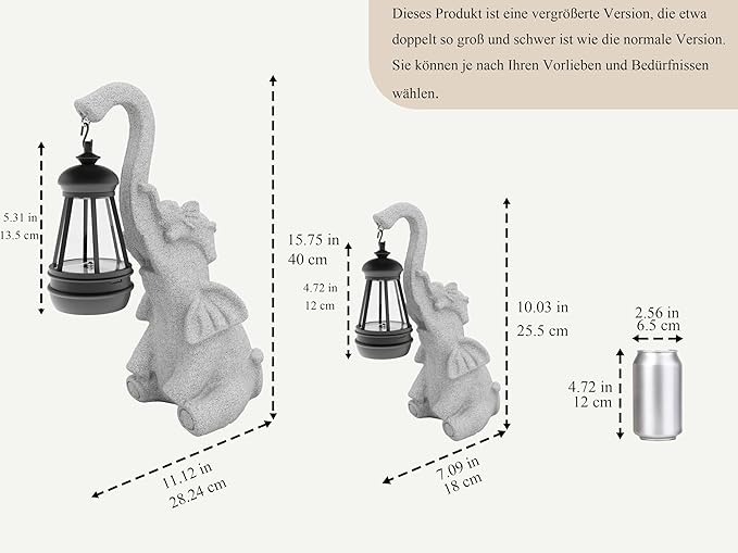- Weather-Resistant Design: Whether it's rain or shine, this IP44 waterproof elephant statue and solar lantern can withstand any weather or environment, making it the perfect addition to your outdoor decor for pathways, flowerbeds, and more