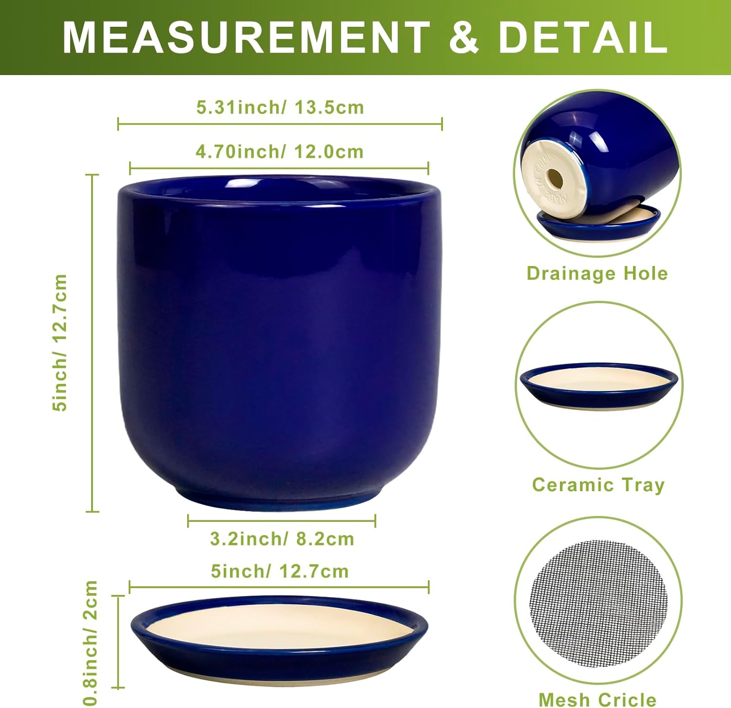 - Size of Blue Planter: Each ceramic planter is 5.31” D x 5.39” H. This indoor plant pot is ideal for succulent, bonsai, herb, cactus, orchid, aloe vera, snake plant, money tree