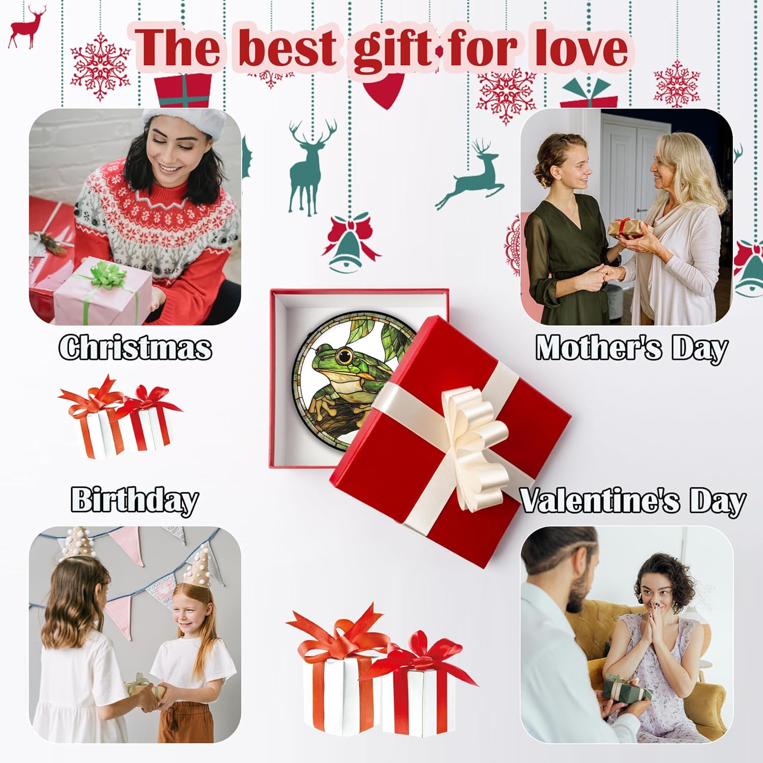 Stained Glass Window Hanging, Frog Green Leaf Sun Catchers Colorful Glass Panel Cool Suncatcher Decor for Birthday for Women, Men, Wife, Aunt, and Mom 7.8 in