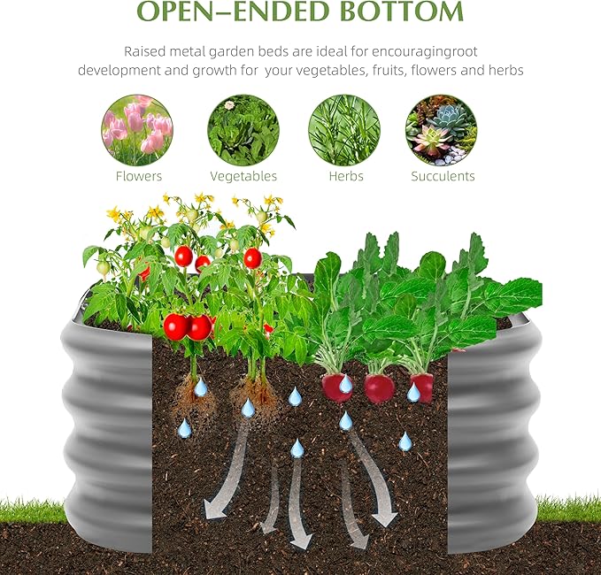 - LARGE CAPACITY: 12-inch deep raised garden bed holds up to 4 cubic feet of soil, perfect for growing deep-rooted plants and vegetables