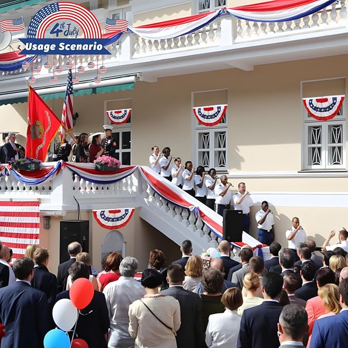 - Wide Range of Applications: These red white and blue bunting is great 4th of July decorations, our american flag can also be decorated for Independence Day, Memorial Day, Flag Day and so on
