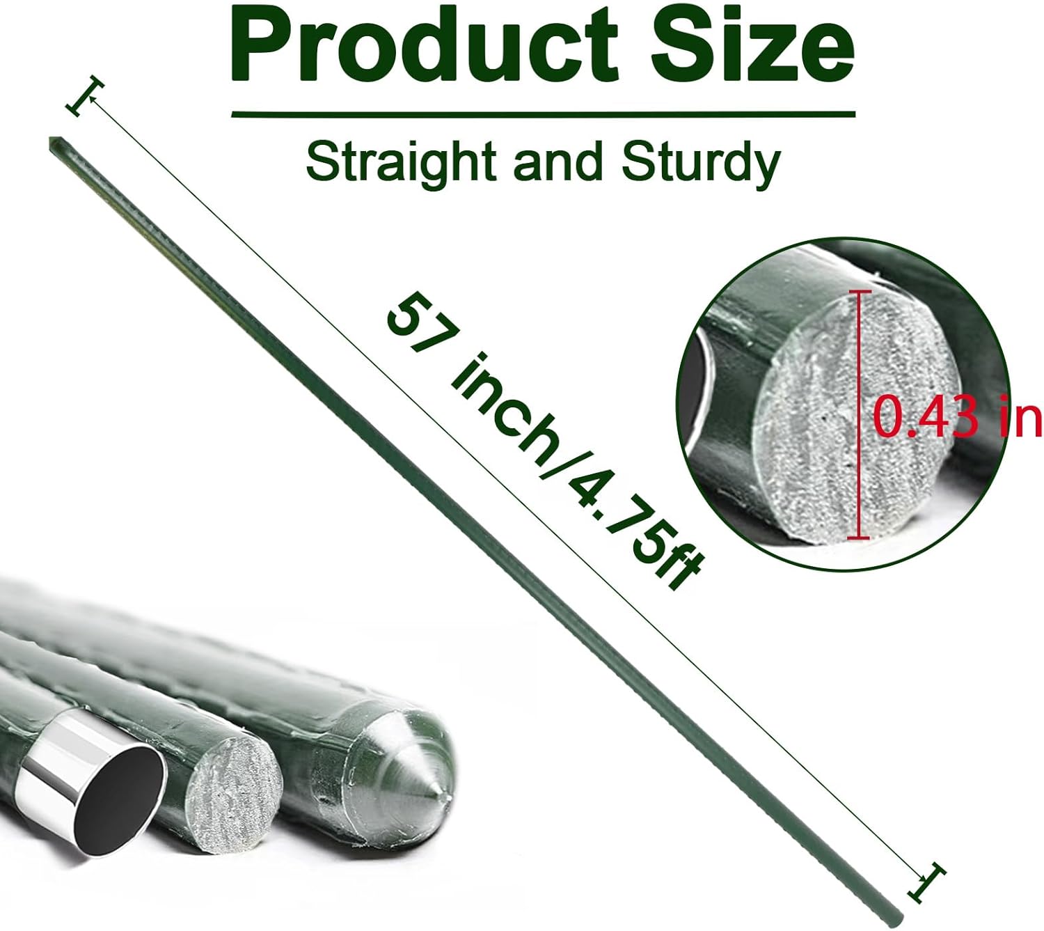 Garden Stakes 57 Inch, Approx 5ft Steel Plant Stakes 25 Pack for Gardening and Farm, 57" Plastic Coated Plant Support for Tomato, Cucumber, Bean, Flower, Potted More Climbing Plants