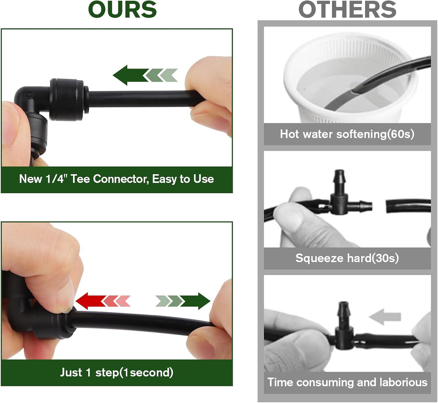 - Leak-proof Irrigation Parts: Our 1/4" quick drip irrigation elbow fittings are made of premium quality plastic with high-strength leak-proof seals to ensure a tight fit with the push-on connection, which can withstand harsh outdoor conditions and is resistant to deformation, cracking and abrasion.