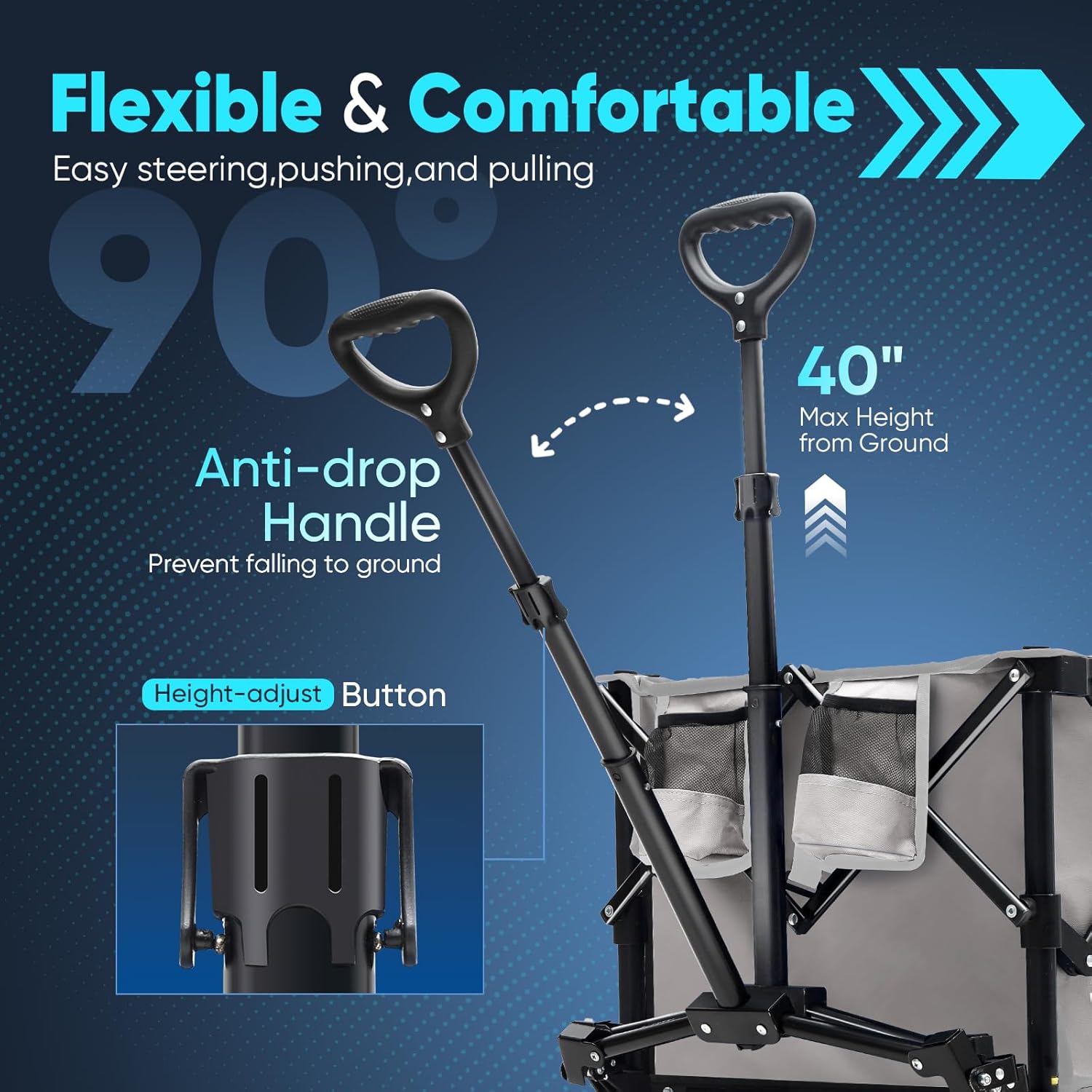 - 【𝐇𝐢𝐠𝐡𝐞𝐫, 𝐓𝐨𝐮𝐠𝐡𝐞𝐫】Equipped with 𝗯𝗶𝗴 𝗮𝗹𝗹-𝘁𝗲𝗿𝗿𝗮𝗶𝗻 𝘄𝗵𝗲𝗲𝗹𝘀, this wagon 𝘁𝘂𝗿𝗻𝘀 𝘀𝗺𝗼𝗼𝘁𝗵𝗹𝘆 over grass, sand, gravel, and more. Made from 𝟔𝟬𝟎𝐃 Oxford fabric, it's 𝘄𝗮𝘁𝗲𝗿𝗽𝗿𝗼𝗼𝗳, 𝘁𝗲𝗮𝗿-𝗿𝗲𝘀𝗶𝘀𝘁𝗮𝗻𝘁, and ready to handle sharp or heavy items without a scratch.
