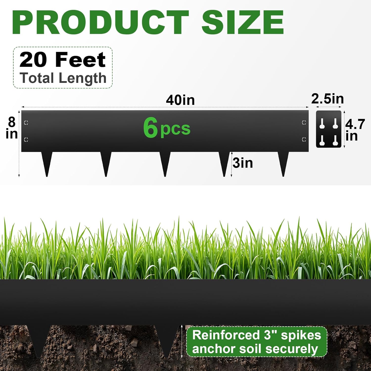 - Metal Edging Size: Each landscape border is 40 inches wide x 8 inches tall; 6 pack landscape edges; comes with 6 plug-in. All pieces connect to create a 20Ft long metal landscape edge.You can also buy more to build a rich and diverse garden landscape