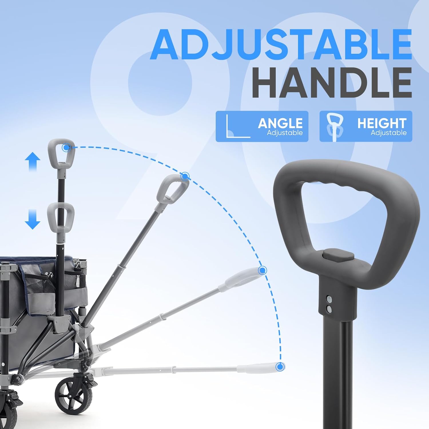 Collapsible Foldable Wagon Cart with 330lbs Weight Capacity, Heavy Duty Folding Wagon Cart with Big All-Terrain Wheels & Drink Holders. Gray
