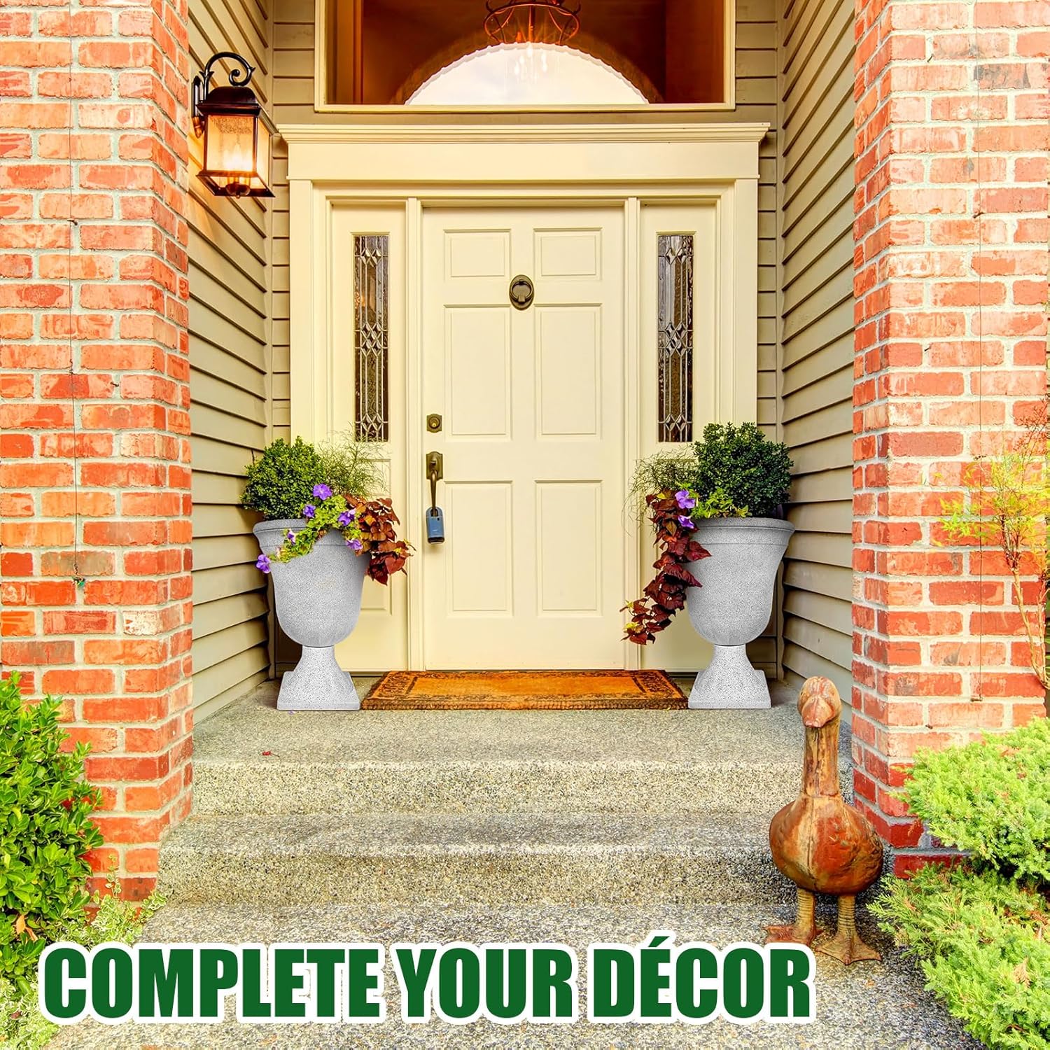 - Classic Appearance: these large urn planters are ideal decorations for both indoor and outdoor spaces. You can decorate them on your patio, deck, living room, porch or office. This simple and elegant flower pot will better show your superb planting skills and make your yard decoration more colorful. This modern tall classic flower pot will be amazing whether it is placed in your home, tree garden or workplace