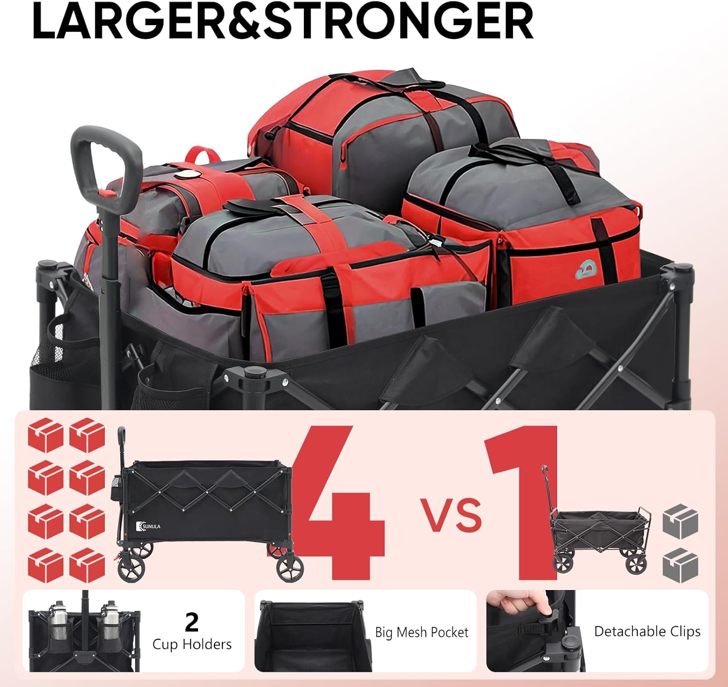 - ๐ฐ๐ซ ๐๐ฎ๐ฝ๐ฎ๐ฐ๐ถ๐๐ & ๐ฉ๐ฒ๐ฟ๐๐ฎ๐๐ถ๐น๐ฒ ๐๐ฒ๐๐ถ๐ด๐ป: With ๐ฐ ๐๐ถ๐บ๐ฒ๐ ๐๐ต๐ฒ ๐ฐ๐ฎ๐ฝ๐ฎ๐ฐ๐ถ๐๐ of other wagons, plus ๐ฎ ๐ฐ๐๐ฝ ๐ต๐ผ๐น๐ฑ๐ฒ๐ฟ๐ and ๐ถ๐ป๐๐ฒ๐ฟ๐ถ๐ผ๐ฟ ๐บ๐ฒ๐๐ต ๐ฝ๐ผ๐ฐ๐ธ๐ฒ๐ for added convenience, this cart is perfect for large loads and organized storage.
