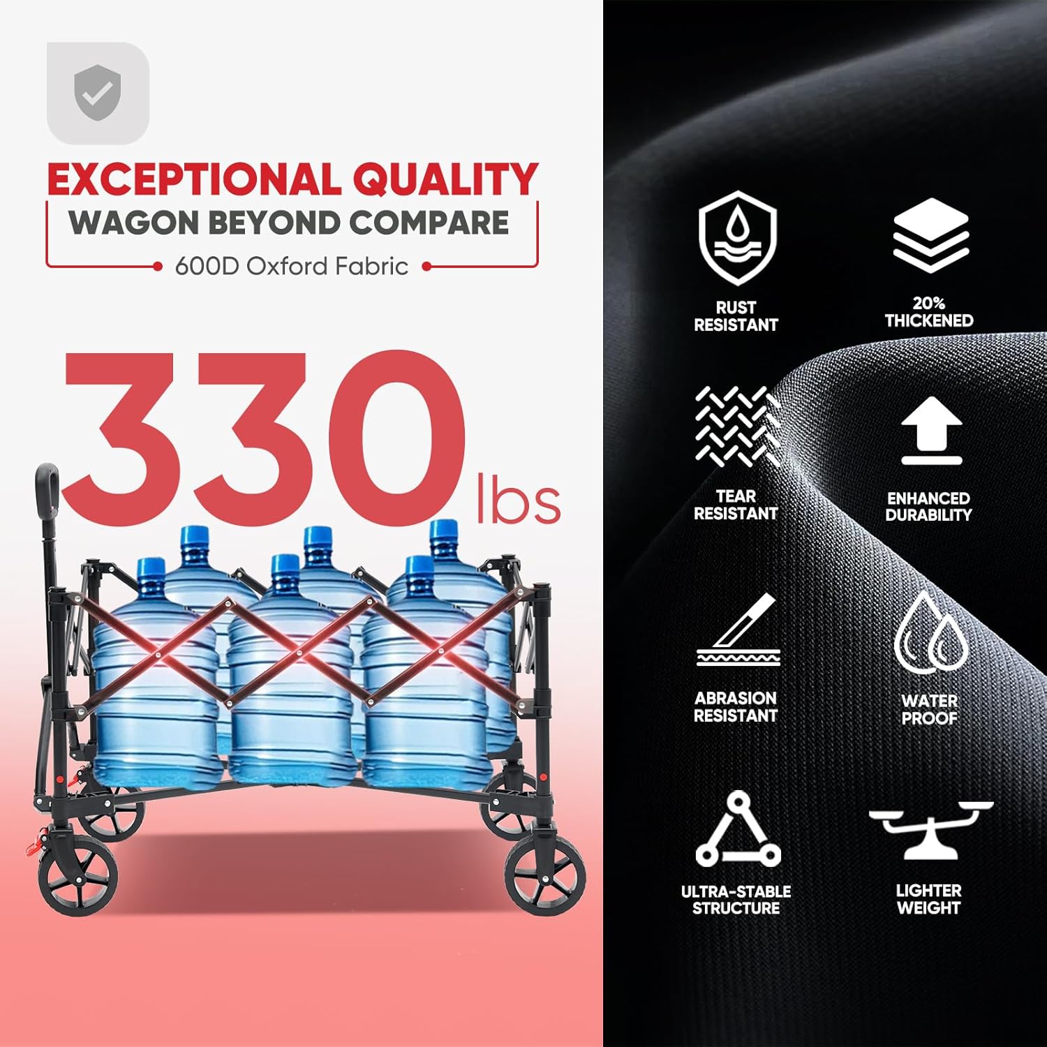 Collapsible Foldable Wagon Cart with 330lbs Weight Capacity, Heavy Duty Folding Wagon Cart with Big All-Terrain Wheels & Drink Holders. Black