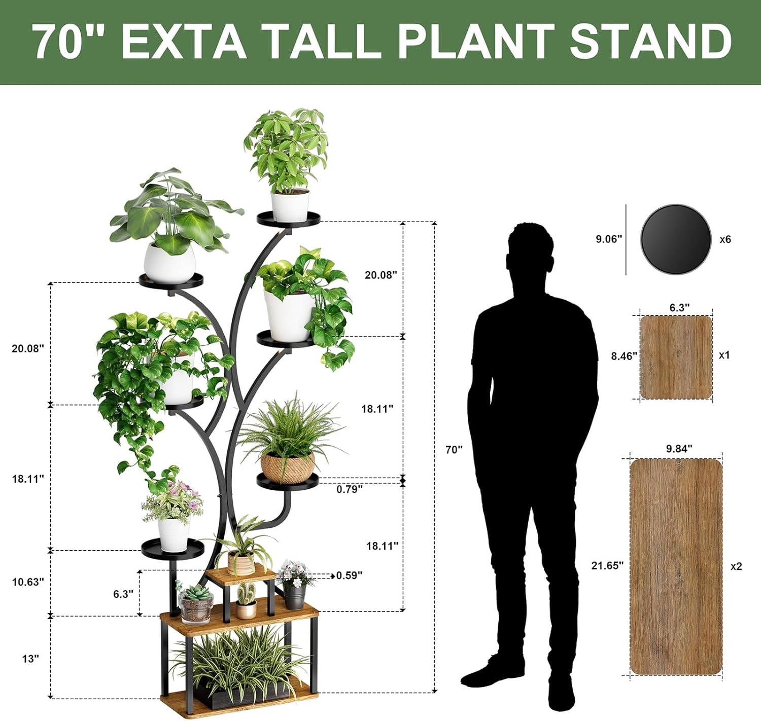 - 9-Tier, 70" Design for Versatile Plant Display: Enhance your indoor garden with our 9-tiered plant stand, perfect for showcasing a variety of plants in one elegant display. The tall plant stand measures at an impressive 70 inches, providing ample space for multiple pots and creating a lush, green corner in any room