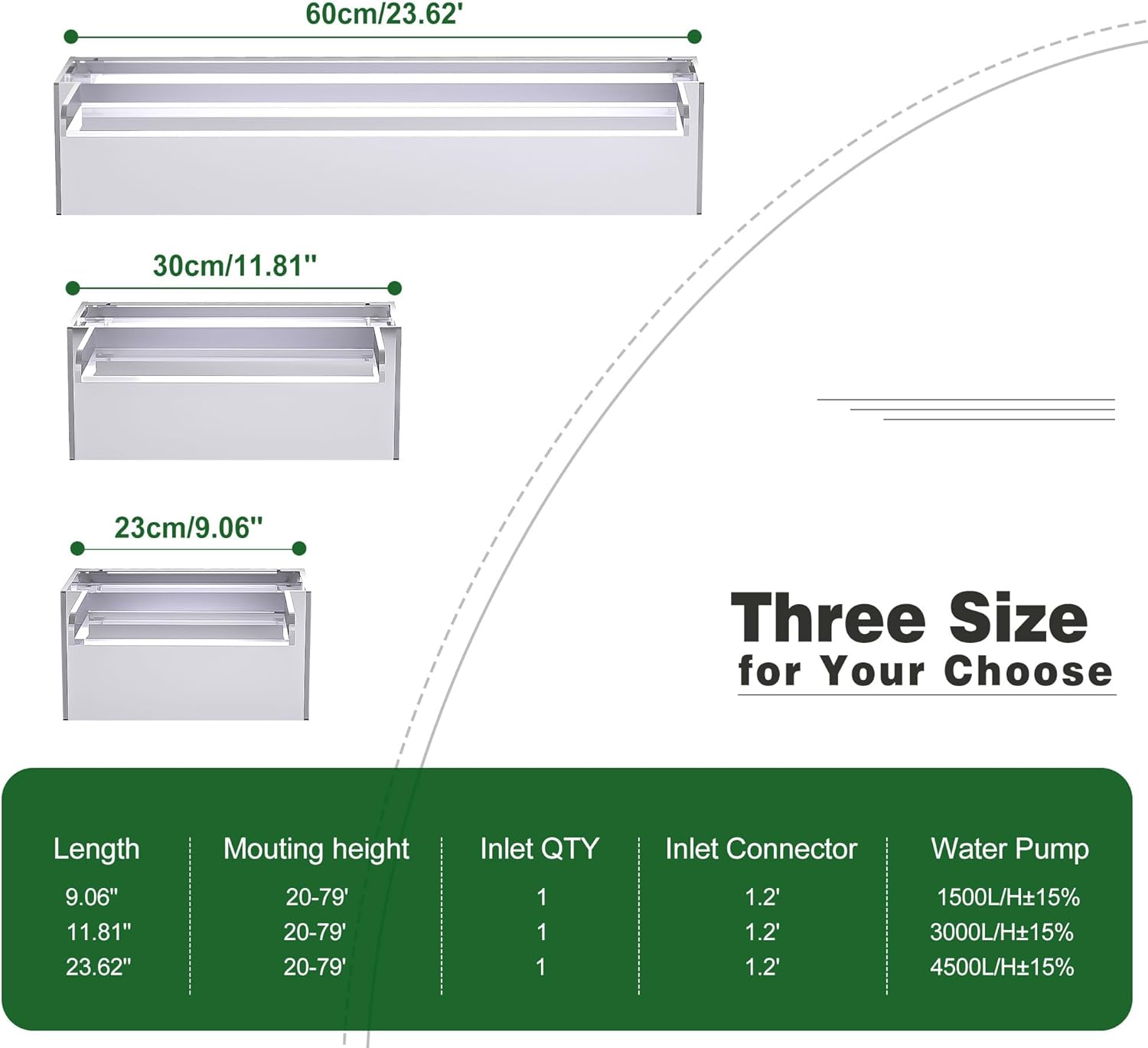 Waterfall Pool Fountain, LONGRUNNEW Transparent Acrylic Pool Waterfall Spillway, 9.06 Inches Pool Water Feature for Garden Patio, Backyard Koi Pond Decor