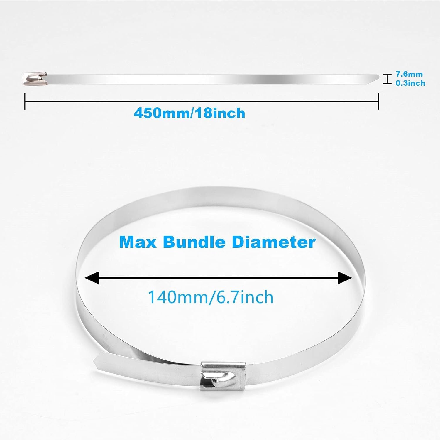 - 【DURABILITY WELL】Made from 304 stainless steel, these durable steel zip ties are resistant to rust and corrosion, ideal for long-term outdoor applications. Temperature resistant from -170°F to 1200°F,they're suited for extreme conditions, such as exhaust pipe heat wrapping, outdoor PVC, and metal piping.