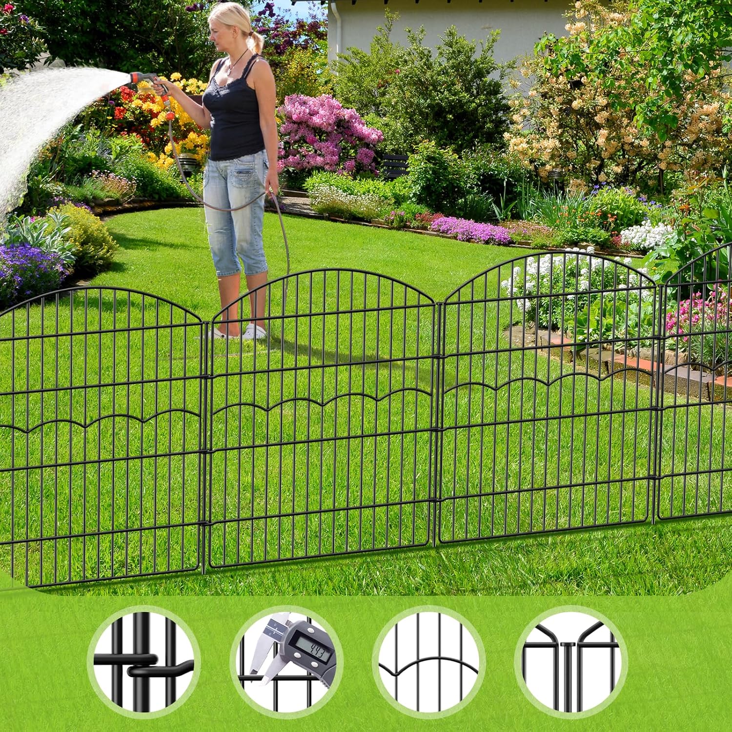 - Multi-Purpose Animal Barrier & Garden Edging Fence – This no-dig fence functions as a temporary fence, metal garden border fence or dog fences for the yard, keeping small animals from damaging plants or escaping to create a pet safe play area. The garden fencing are ideal for providing long-term protection for yard, flower beds, vegetable gardens, landscape and trees, or as a sidewalk, driveway or patio fence decoration, to add decorative and privacy to outdoor spaces.