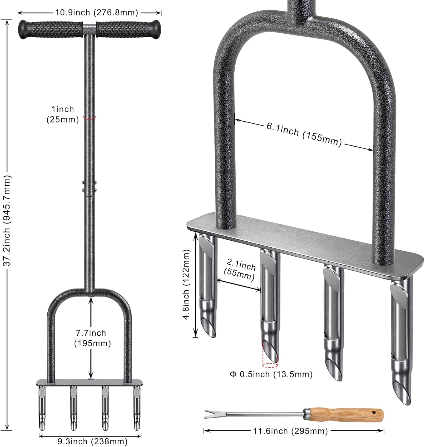 Dolibest Manual Aerator Lawn Tool, Manual Yard Plug Aerators with 4 Stainless Steel Semi-Open Plugs, Pre-Assembled Manual Grass Aerating Tool & Clean Hand Tool, Improving Lawn Health -37Inch