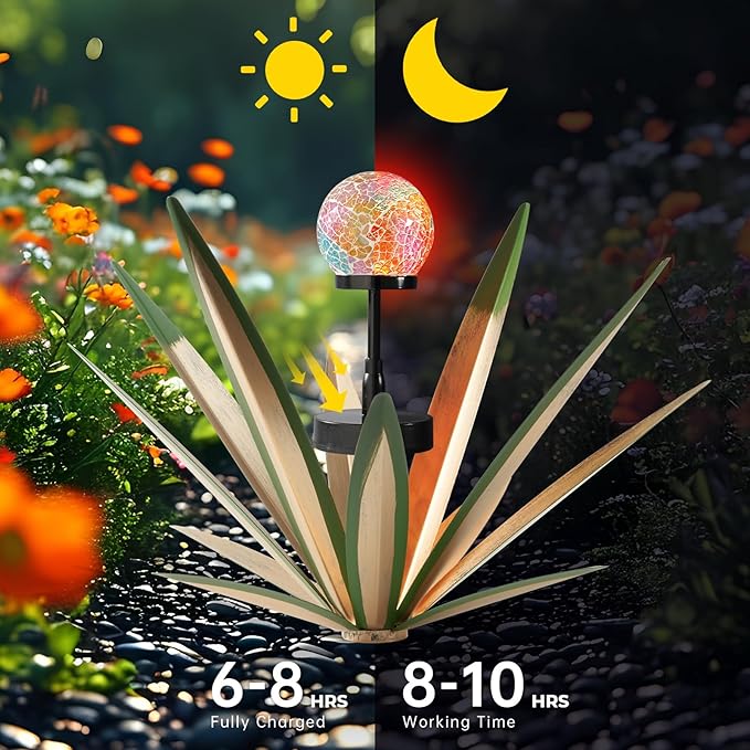 - Solar powered light of agave sculpture can be lit up for 8-10 hours with a full charge