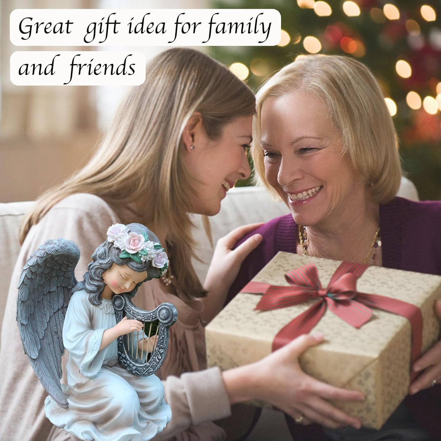 Garden Angel Decor Solar Angels Statues for Garden Waterproof Angel Sculpture Playing The Harp Solar Angels for Yard Patio Gardening Gift