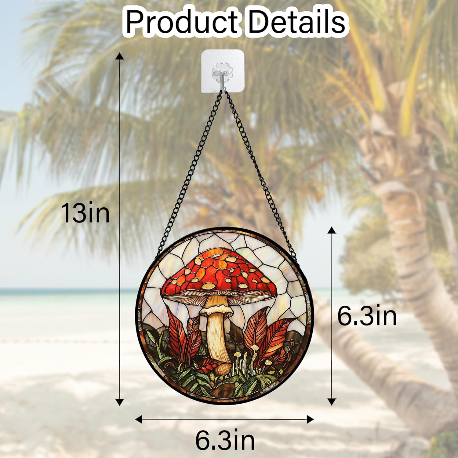 Stained Glass Window Hanging, Big Red Mushroom Suncatcher for Doors Home Sun Catchers Decoration and Christmas, Mother's Day Birthday Gifts for Women, Men, and Mom 6.3 in