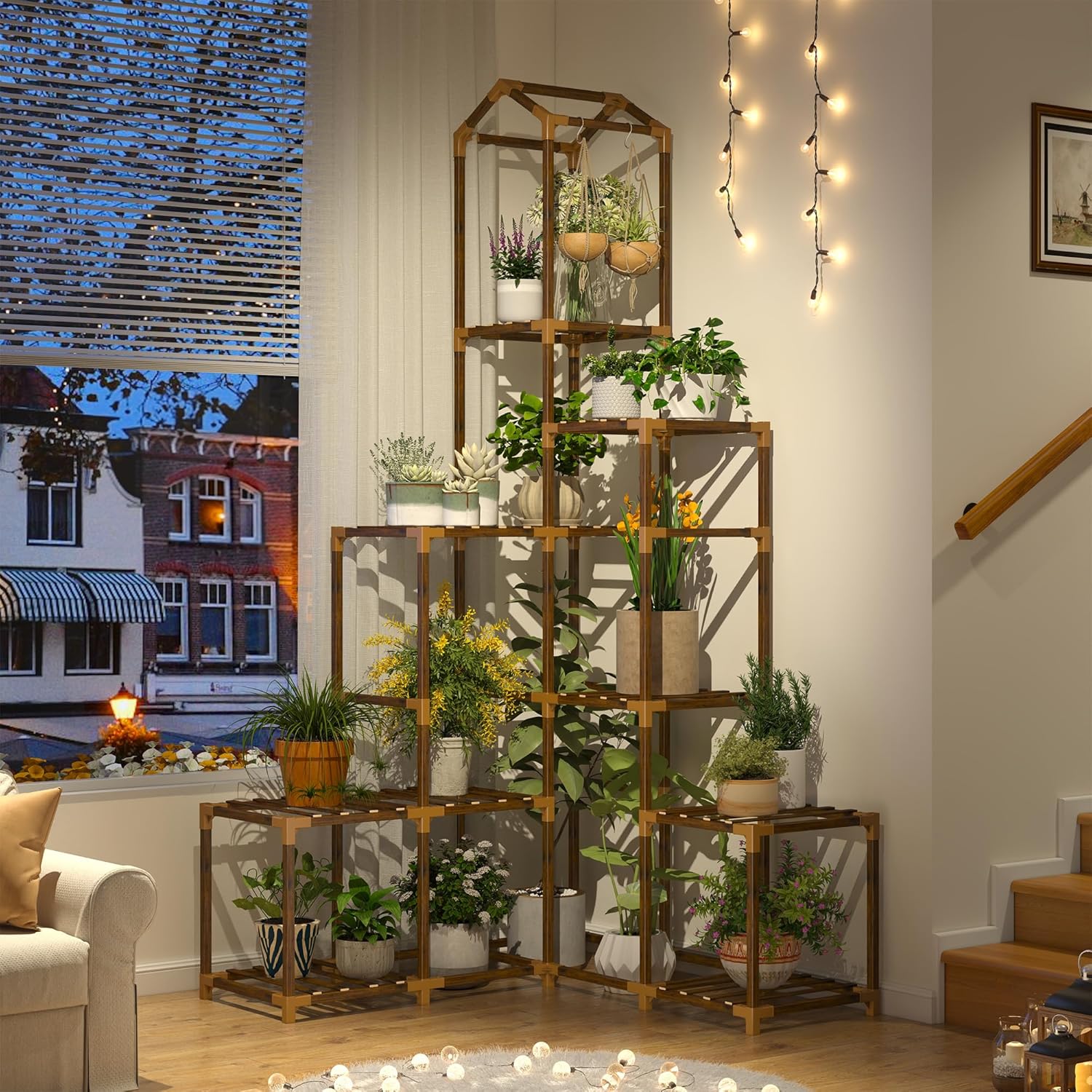 EnHomee 64.2" H Plant Stand Indoor Outdoor Tall Plant Shelf for 13-19 Pots Corner Tiered Plant Stands for Multiple Plants Wood Hanging Plants Holder for Garden Balcony Patio Window Porch