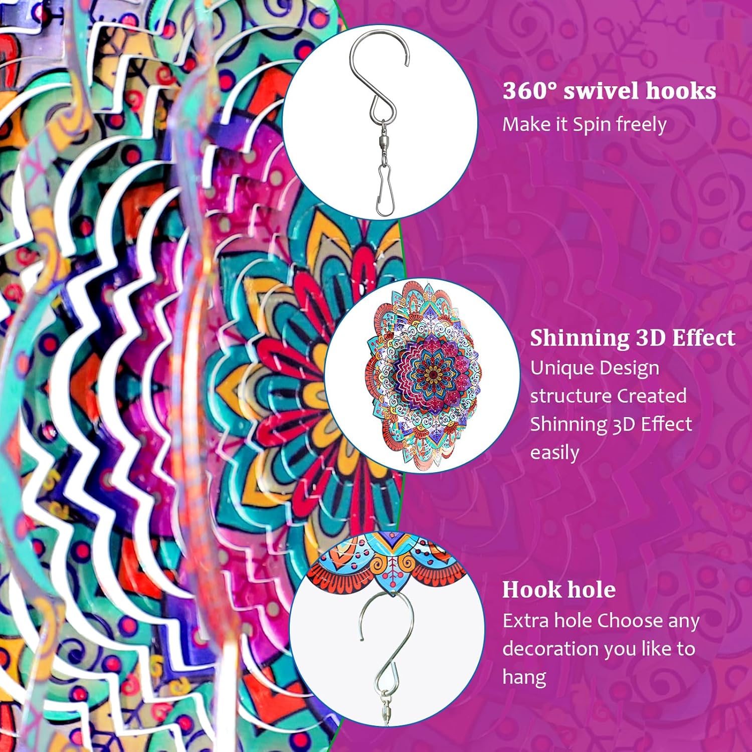 - 【Unusual Mandala Gift】Whether it's Mother's Day, to honor the nurturing love of your mom; Father's Day, to show appreciation for your dad; a housewarming party, to add charm to a new home; Thanksgiving, to express gratitude; or Christmas, to spread holiday cheer, this mandala 3D wind spinner is guaranteed to delight and leave a lasting impression on your cherished family members and friends.