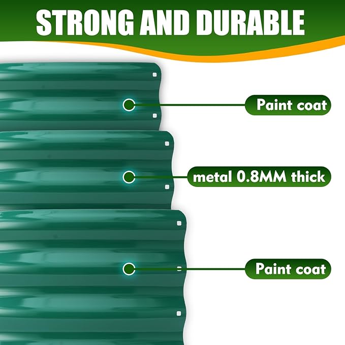 - Durable Construction: Made from 0.8mm thick galvanized steel with multi-layer eco-friendly paint coatings for long-lasting use.All galvanized steel boards are locked and spliced with strong screws and butterfly nuts