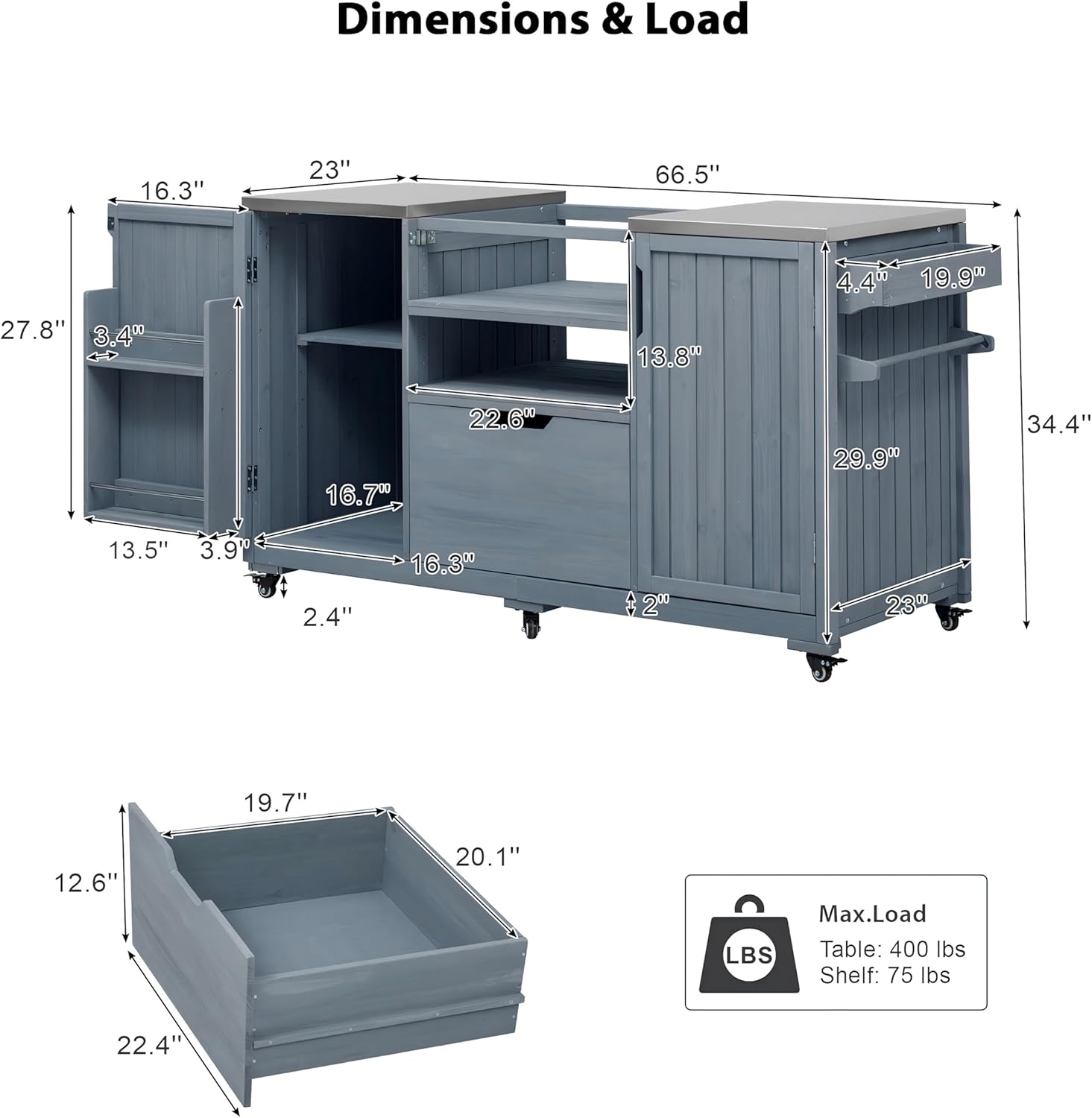 - Product Dimensions : 66.5"D x 23"W x 34.3"H