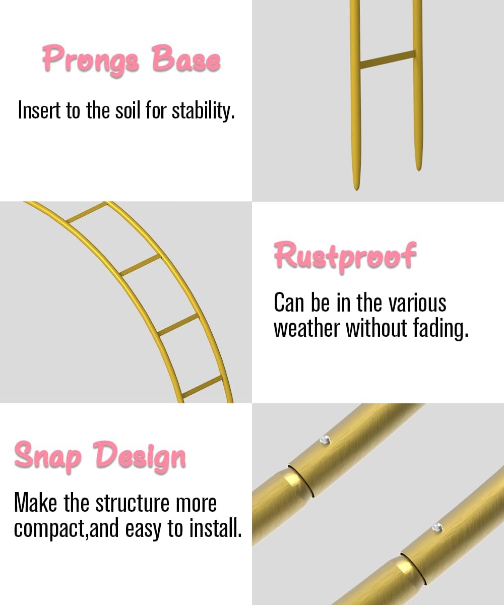 - Double-Tubes Construction: This garden arch features a robust double-tube structure with a sturdy base, ensuring exceptional stability and balance. The snap design contributes to a more compact and durable construction, making it suitable for both indoor and outdoor applications.