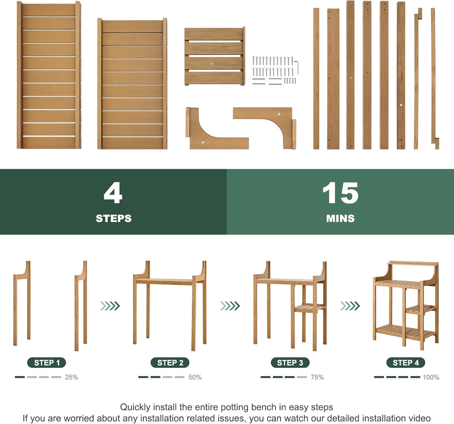 - 【After-sale】The potting tables for outdoors is green and durable. Whatever problems of this all weather potting table, please feel free to contact us, we will get it settled as soon as possible.