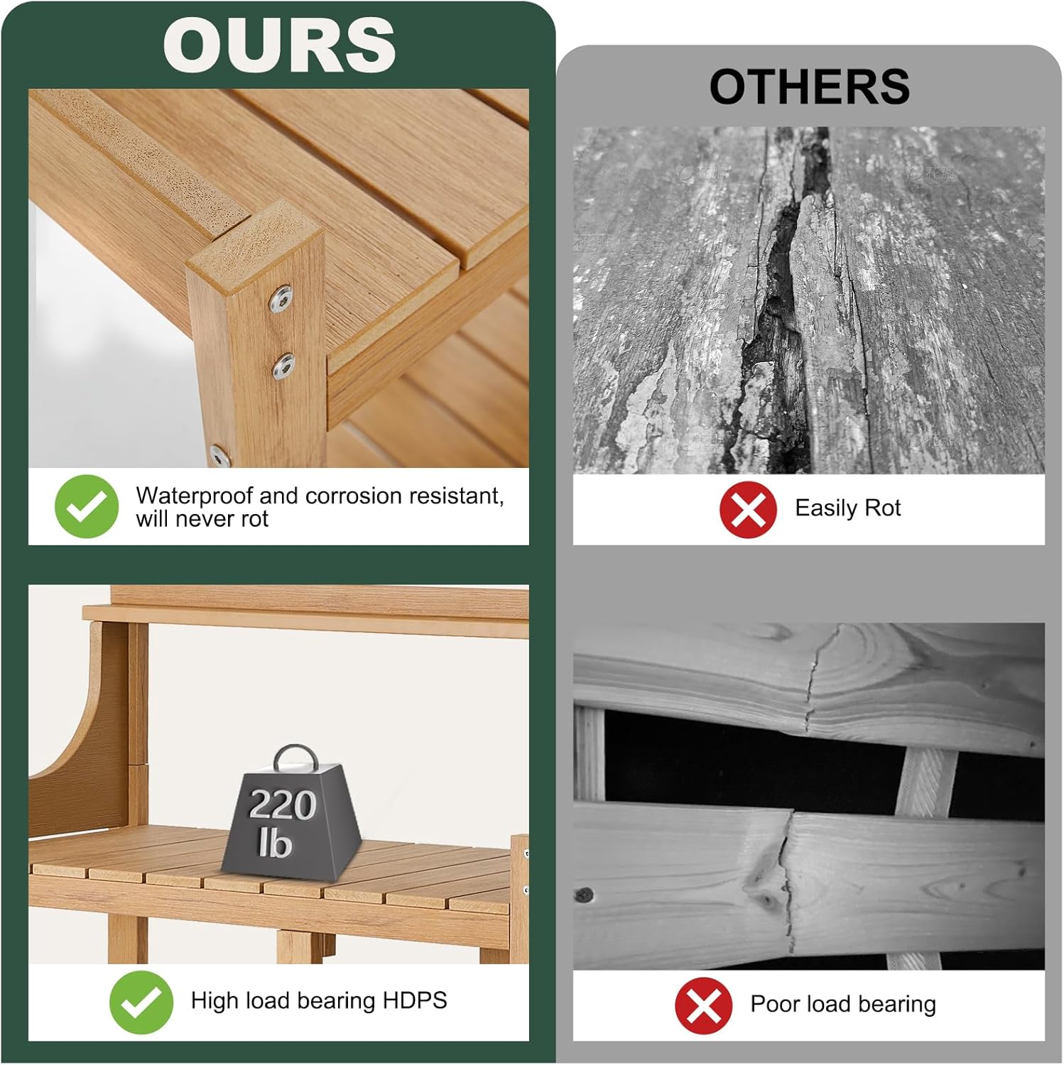 LMP HDPS Potting Bench Table, Potting Bench, Potting Benches for Outside, 50’’x17.5x37.5' (LxWxH) All Weather Potting Table Work Station for Outside Gardening, Wooden Like