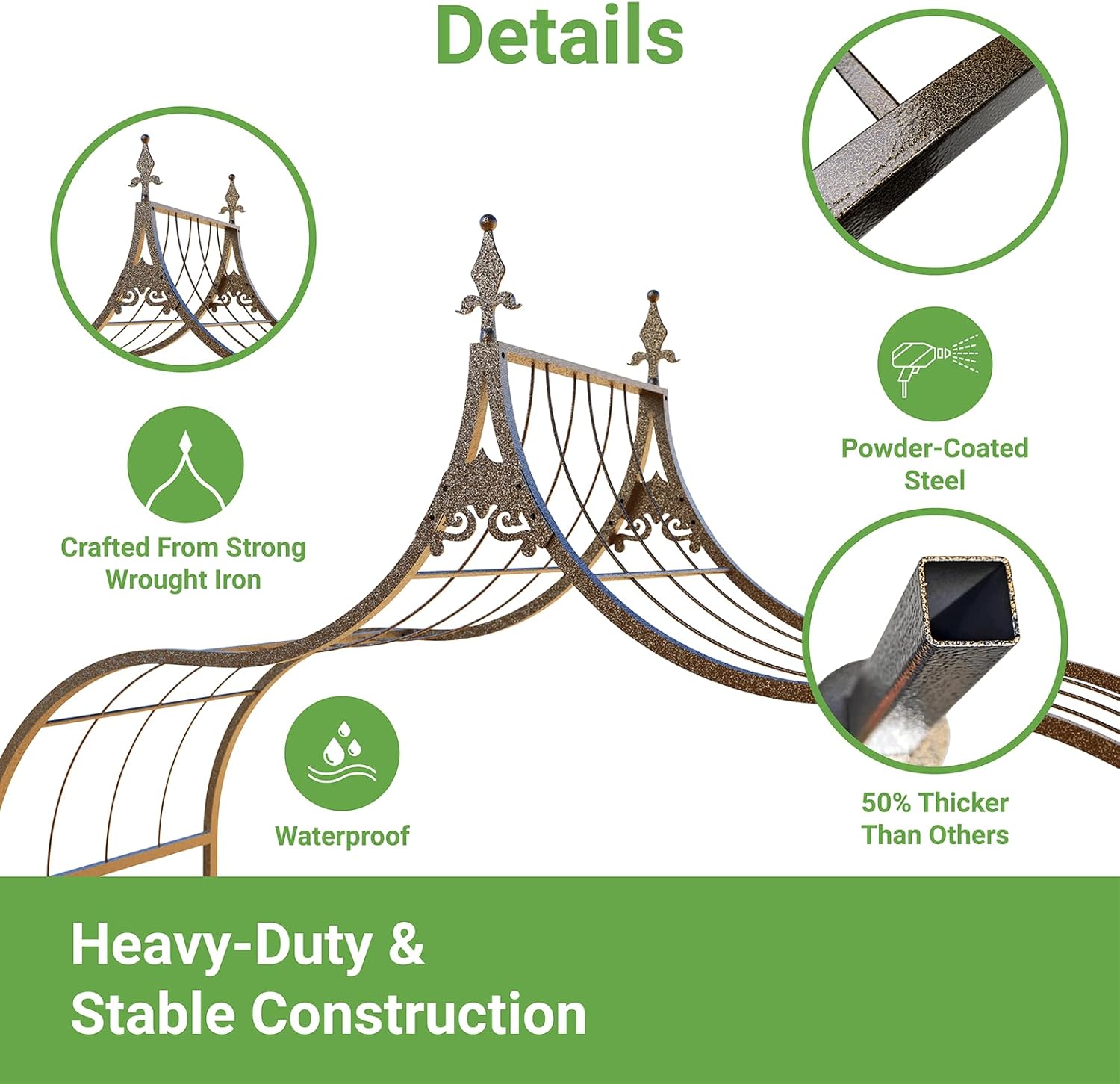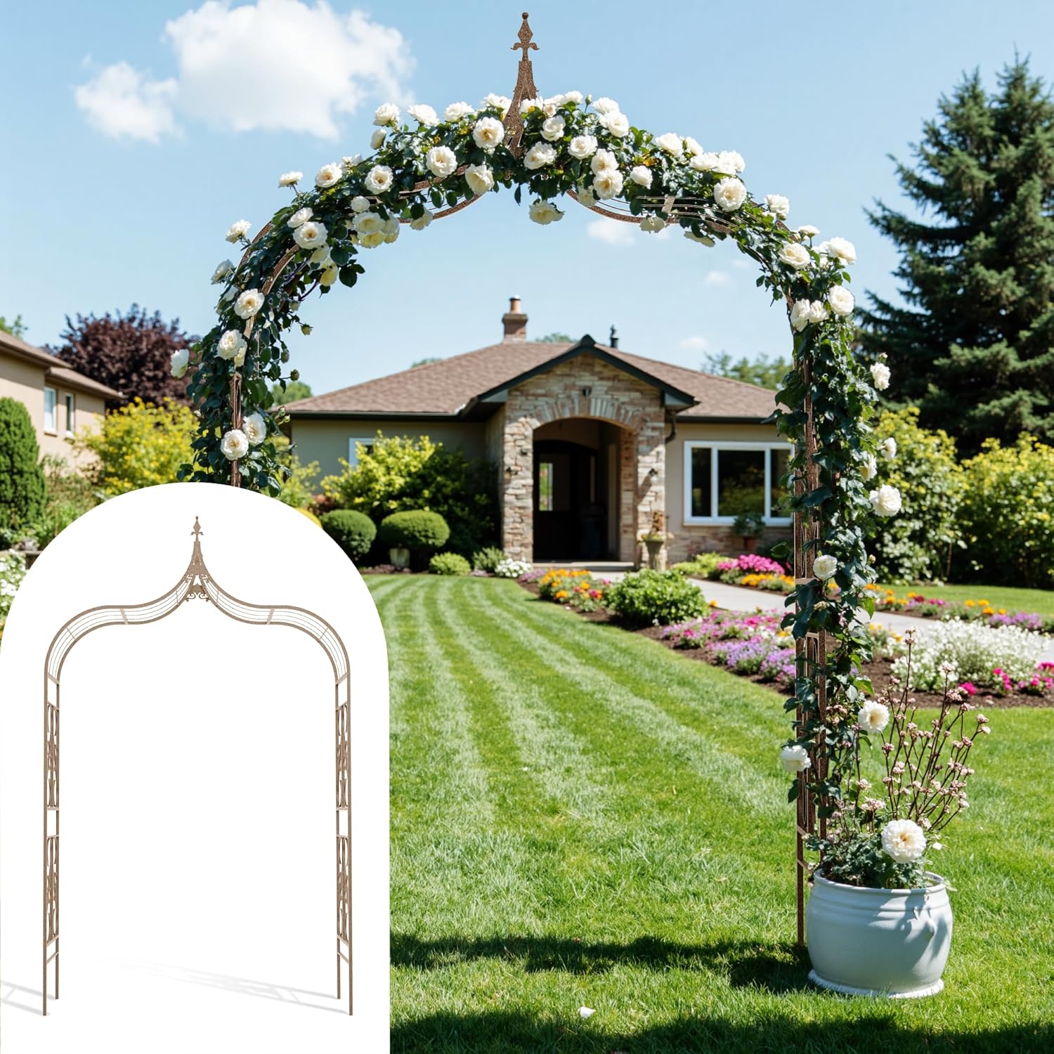 Metal Garden Arbor, 102.36” Tall Wrought Iron Archway for Climbing Plants & Flowers, British-Style Garden Trellis (Copper)