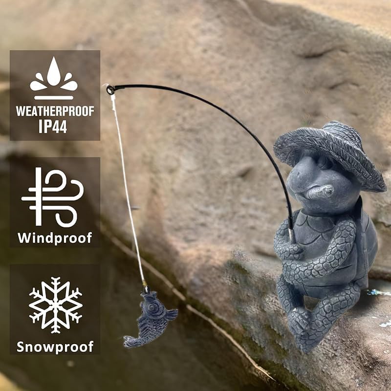 - Weatherproof and Durable: Made from high-quality resin, this weatherproof tortoise fishing statue is built to withstand wind, rain, sun, and snow, ensuring long-lasting beauty for all seasons in your garden, fish pond, or outdoor spaces.