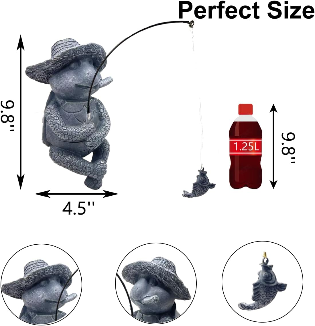 - Compact and Eye-Catching Design: Measuring 9.8"x4.5", this fishing sculpture is the perfect size for any garden decor or small koi pond. Its unique design will stand out, creating a whimsical focal point in your outdoor pond, fence, or table settings.