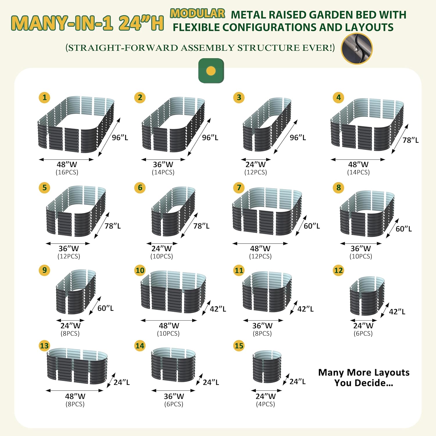 - Many-IN-1 MODULAR RAISED GARDEN BED - The fun you can get is that when you are tired of the same old raised garden bed shape and want to give your planting area a makeover, our modular raised garden bed fully support you to make your own design! Numberous shapes for you to choose the best one for what you want.