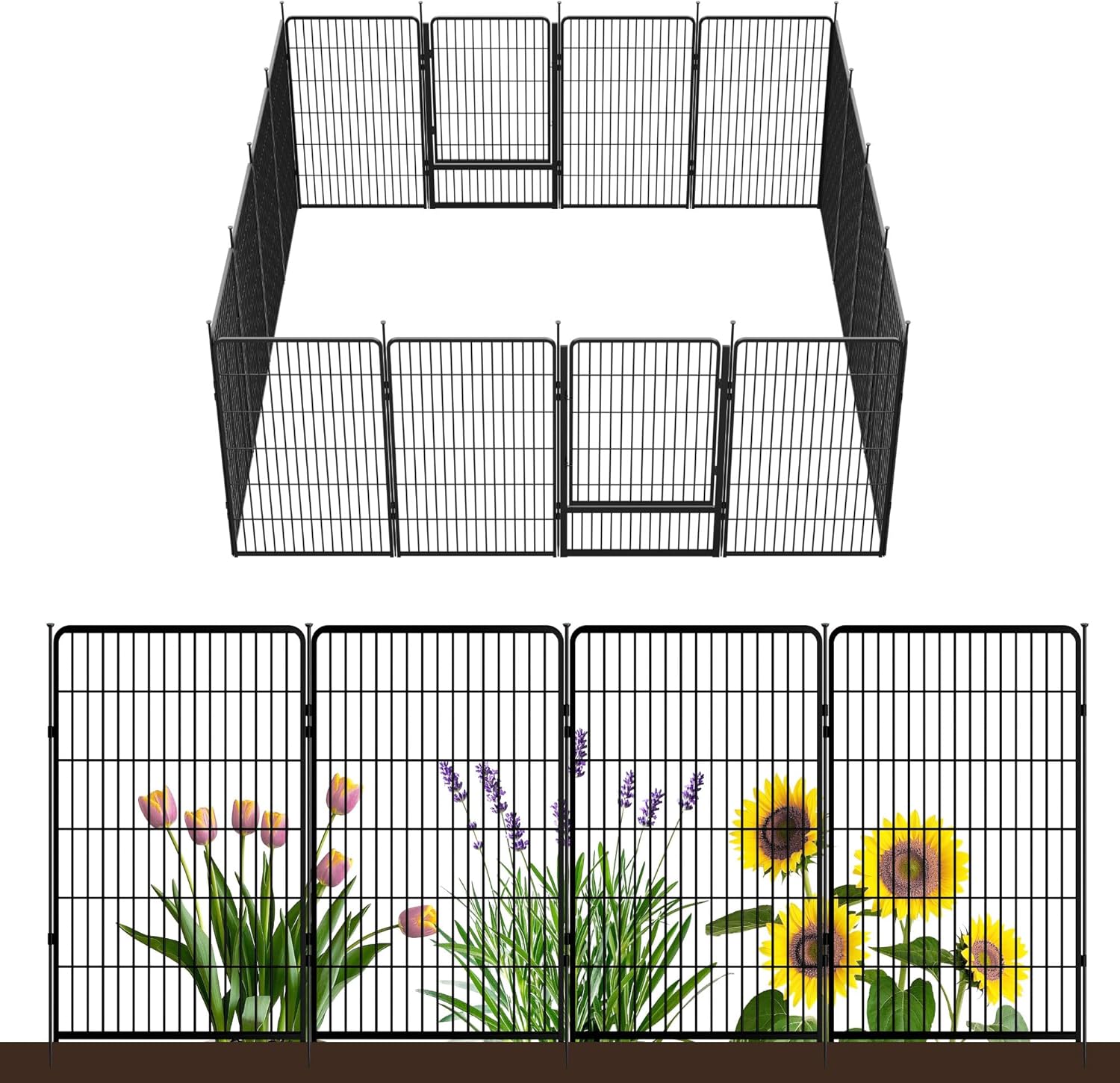 Decorative Garden Fence with Gate 45 in(H) x 35.7 ft(L) 16 Panels, Heavy Duty Metal Animal Barrier Fence for Yard, Flower Bed Fencing, Garden Border Fence, Easy Set Up, Black