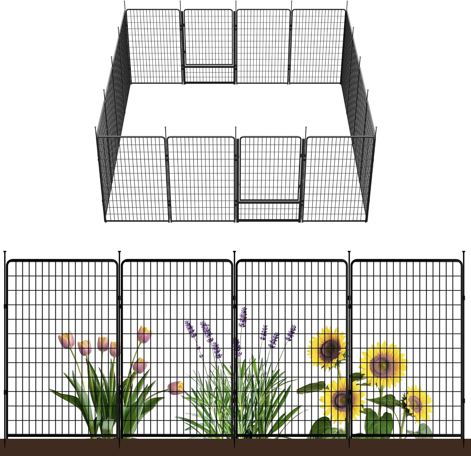Decorative Garden Fence with Gate 50 in(H) x 40.9 ft(L) 16 Panels, Heavy Duty Metal Animal Barrier Fence for Yard, Flower Bed Fencing, Garden Border Fence, Easy Set Up, Black