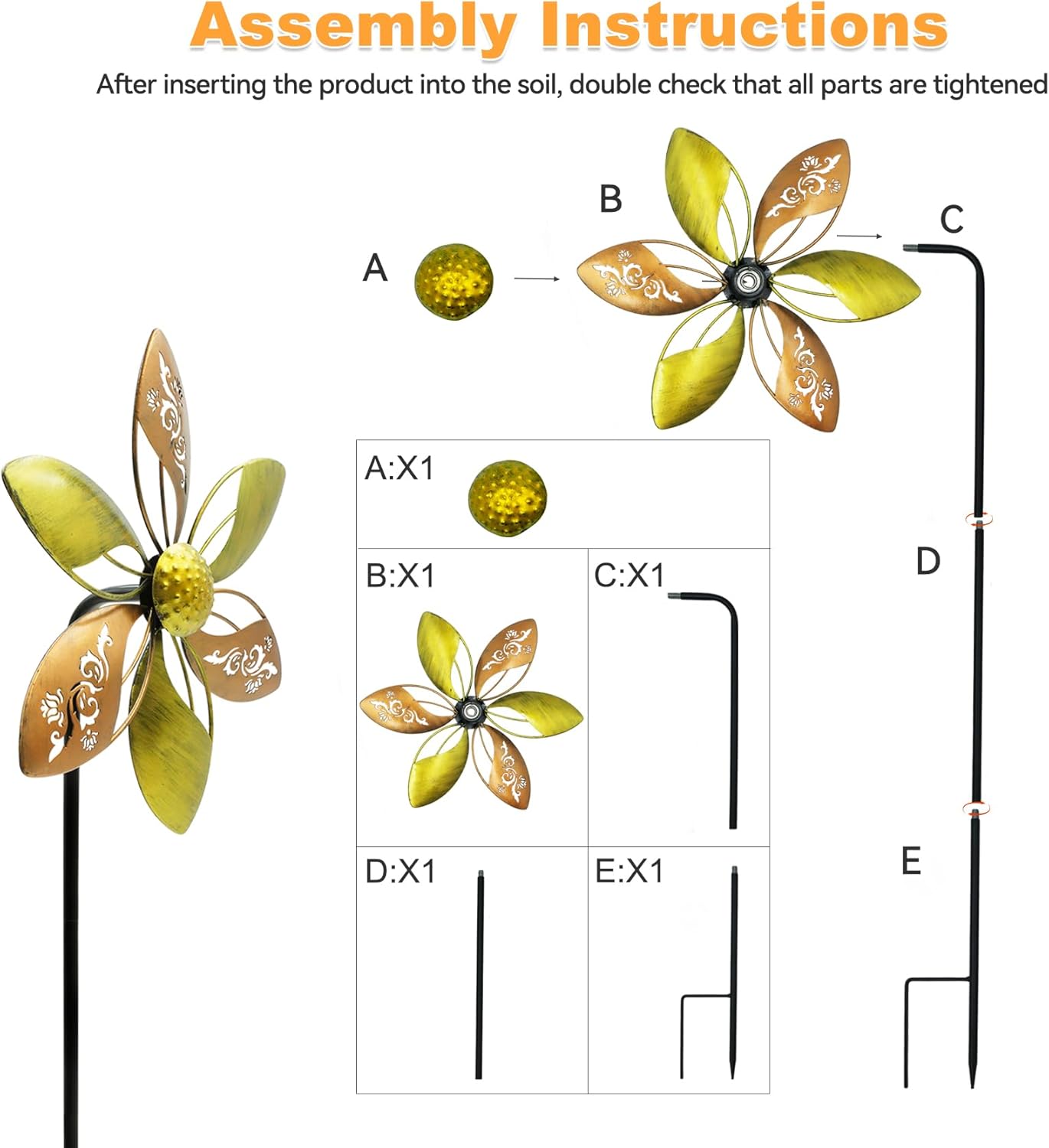 - 3-Minute Tool-Free Assembly: Simply connect 3 interlocking sections and insertion into the soil. Small metal wind spinner with 2 prong arch anchor ground stake for extra stability prevents tipping in strong winds.